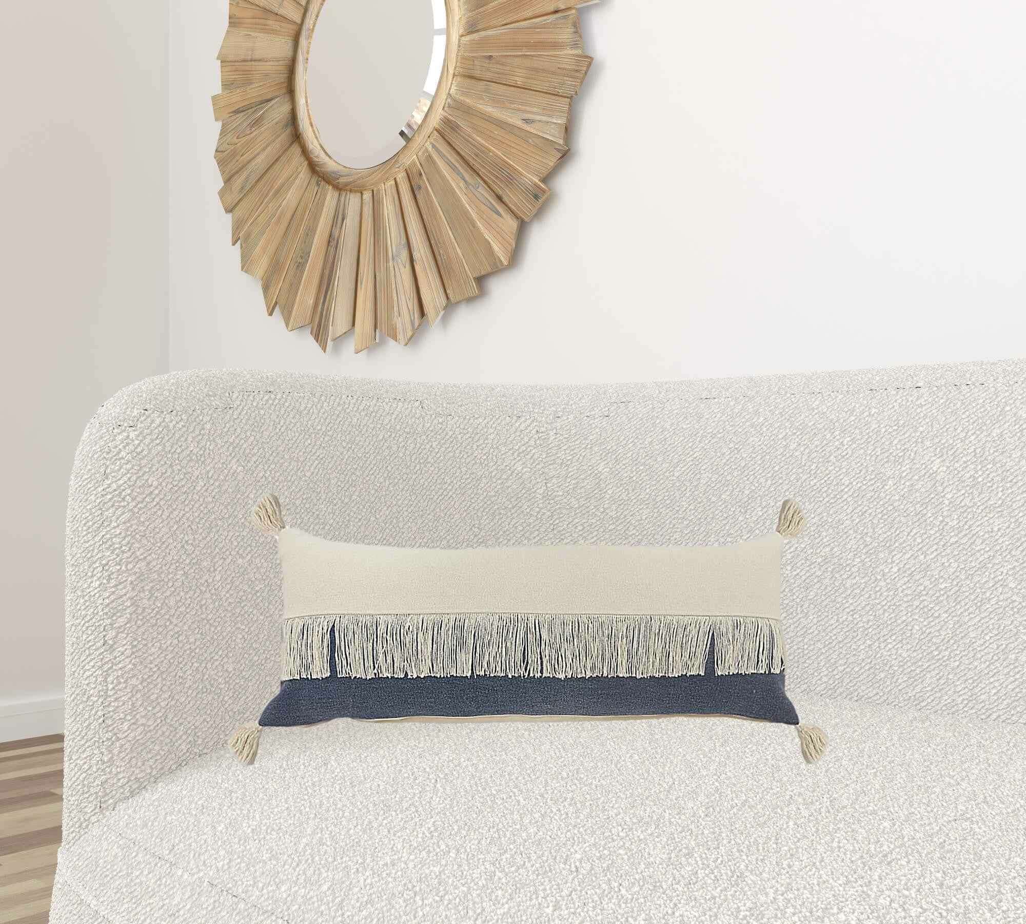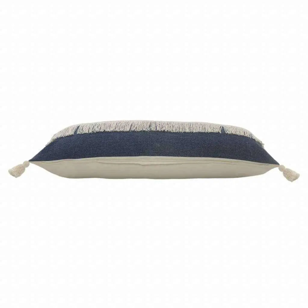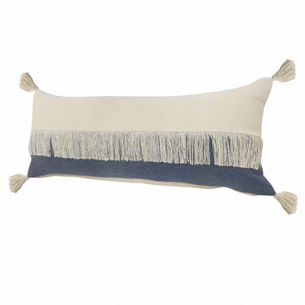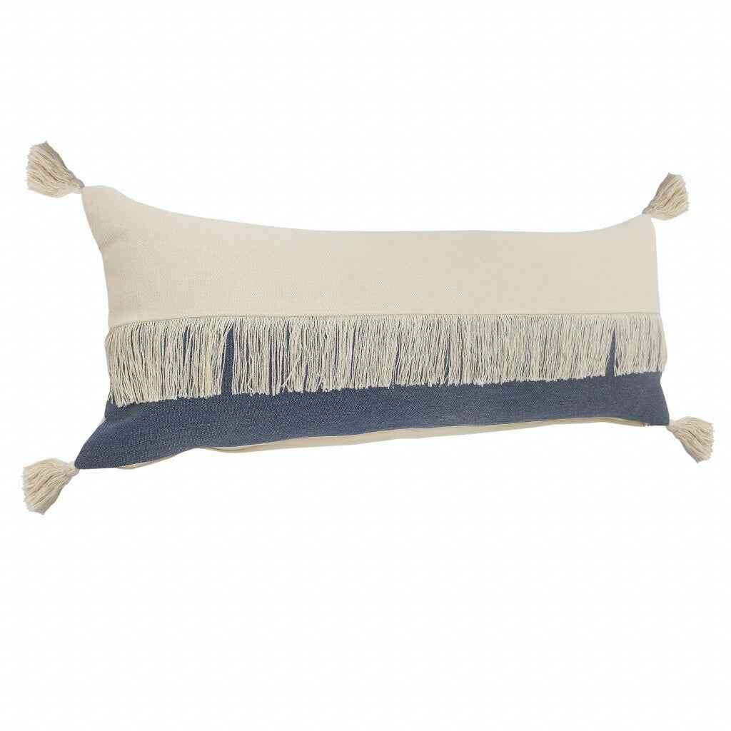 14" X 36" Denim Blue And Off-White 100% Cotton Zippered Pillow