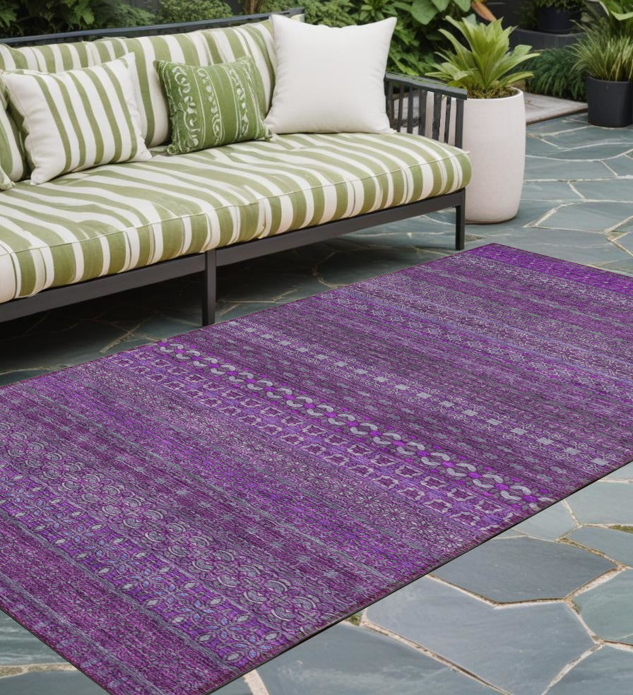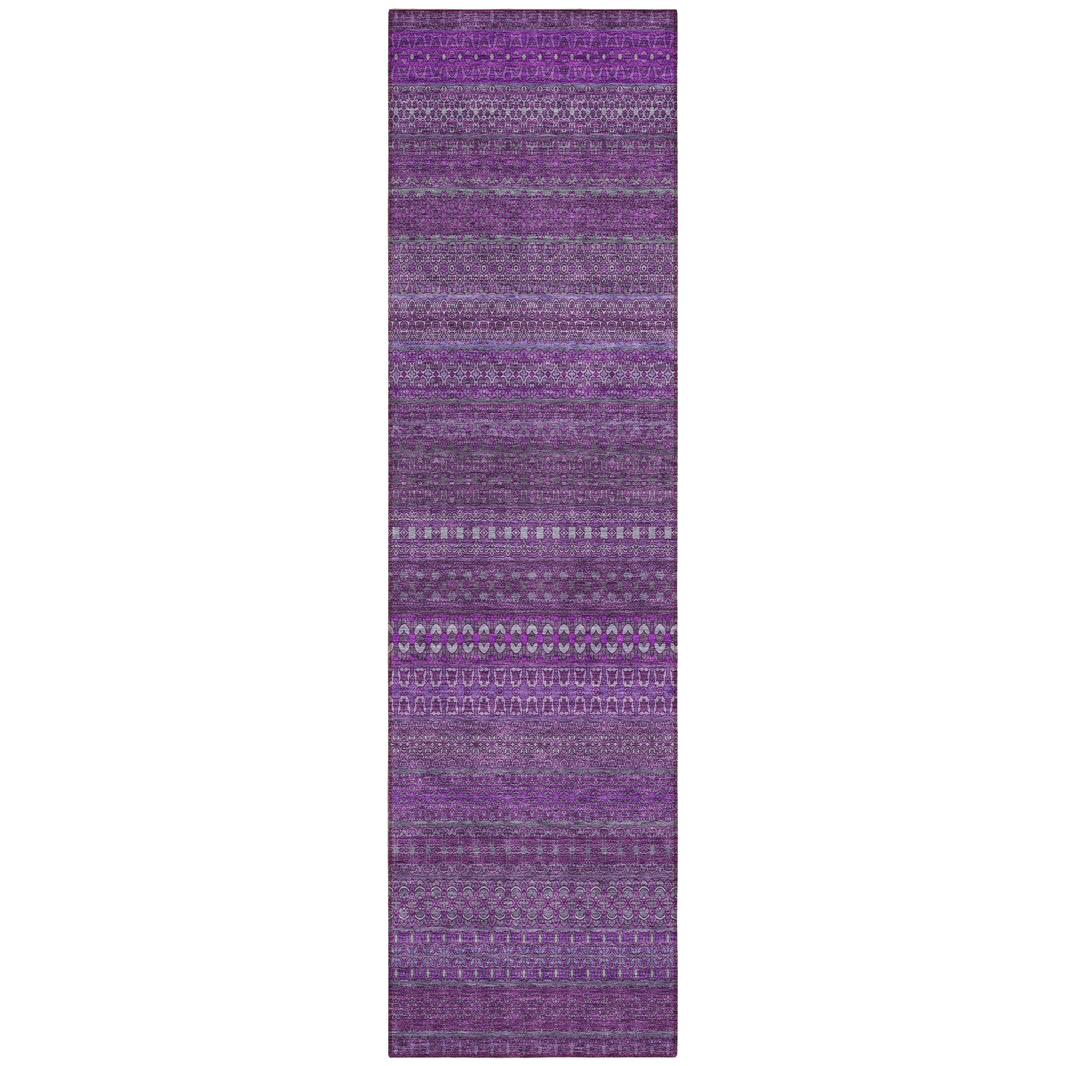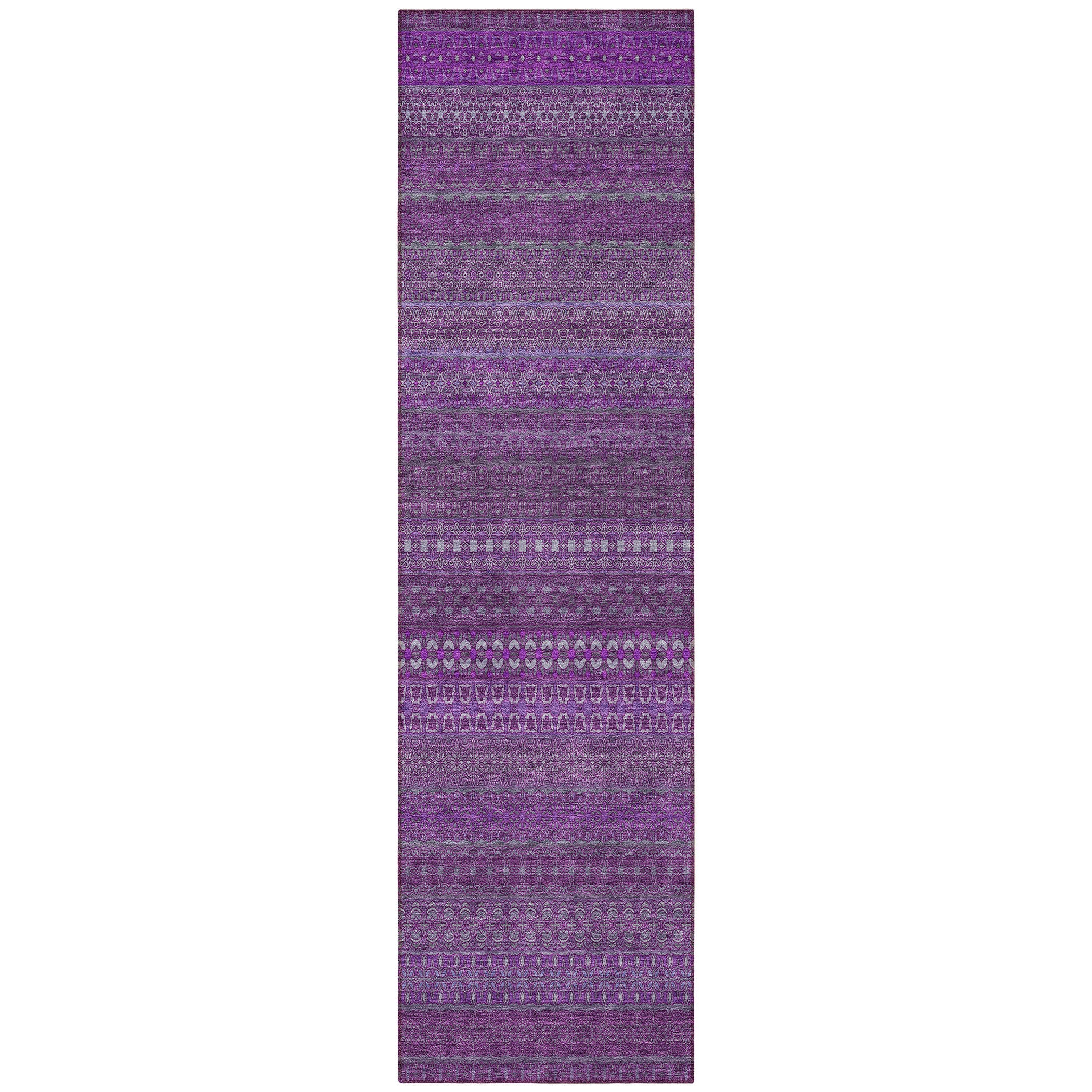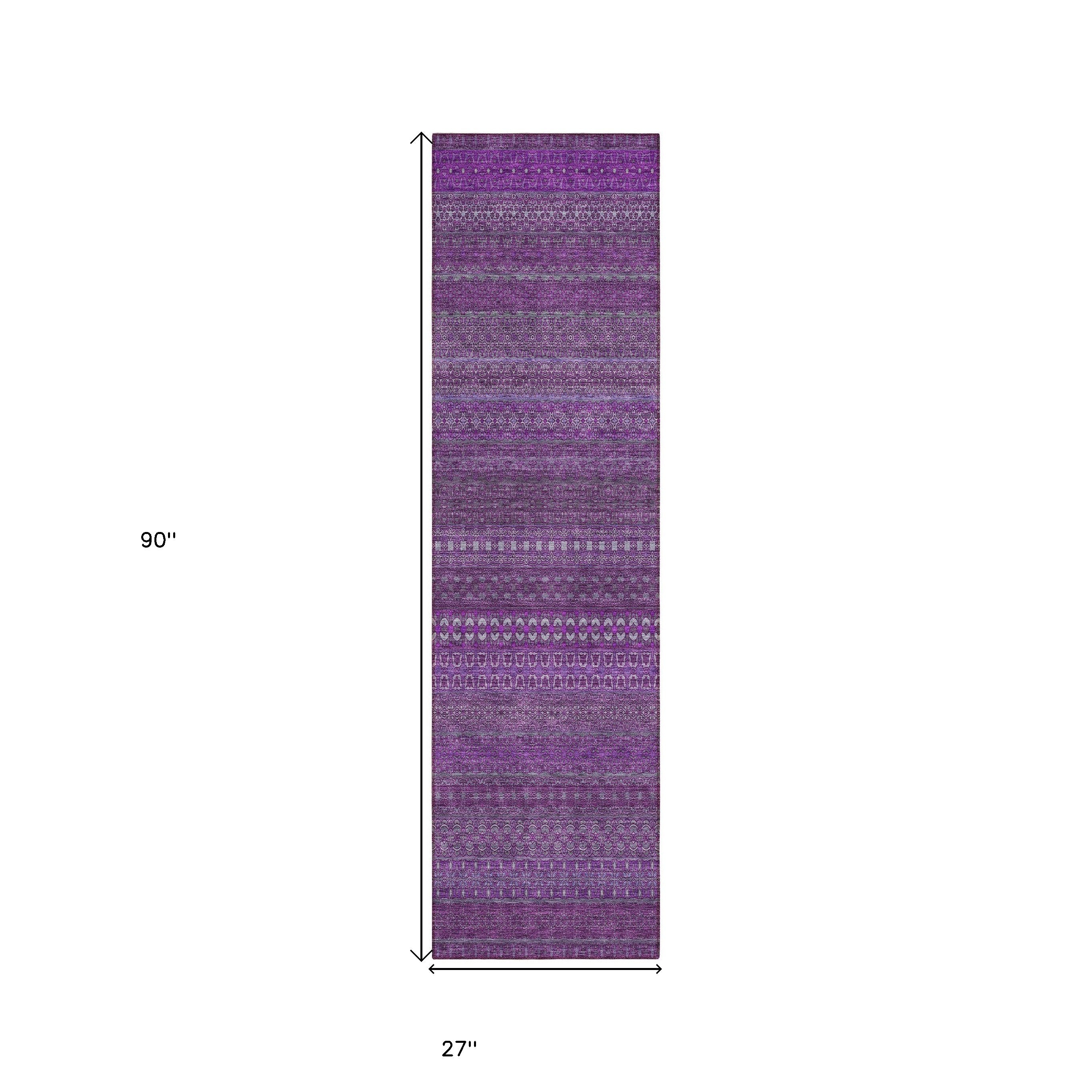 2' X 8' Eggplant Striped Washable Indoor Outdoor Runner Rug