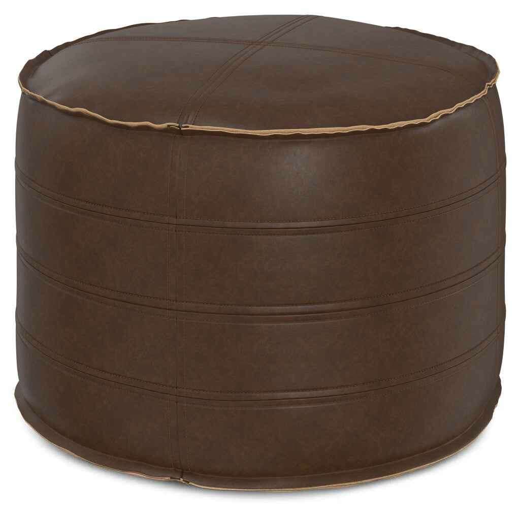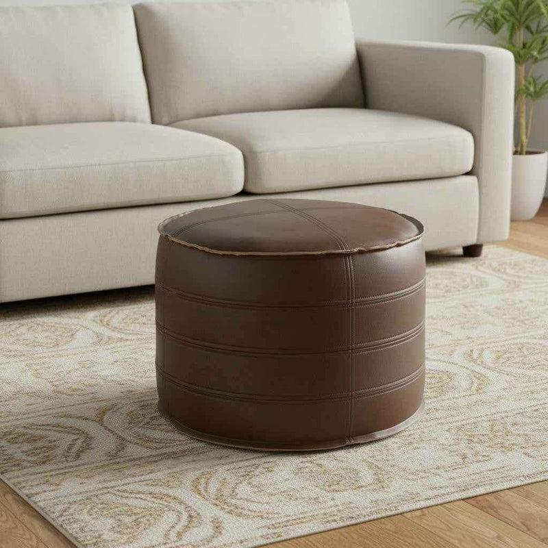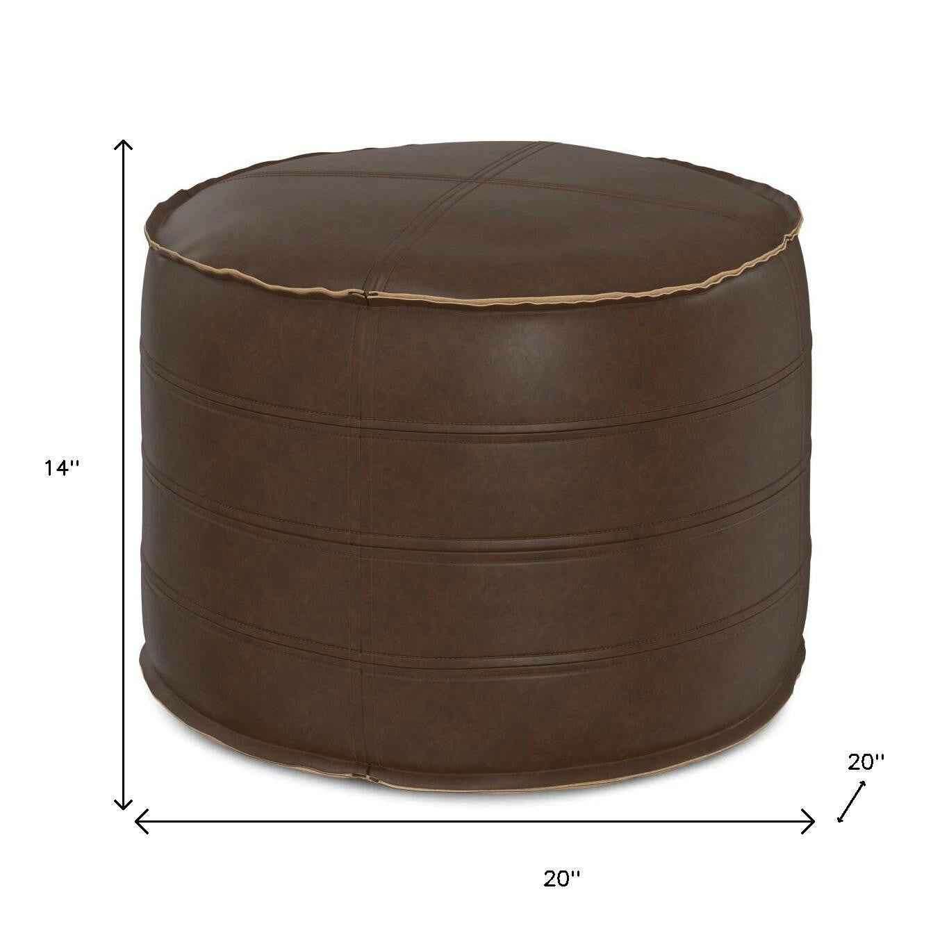 20" Brown Faux Leather Round Pouf Ottoman 跳到内容