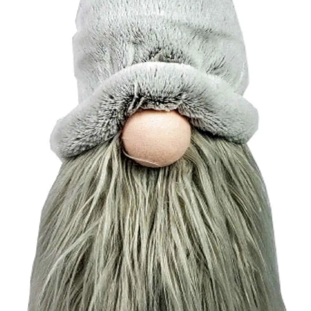 This 30" groovy grey with pointy hat fabric sitting gnome sculpture will add a beautiful decorative accent to your decor. This charming decorative accent is expertly made of high grade fabric in a grey and off white coloration. Great to use on its own or mix with other decorations for the perfect look. Use this piece as bookshelf decor, on your desk, coffee table, or anywhere in your home. Not just for holiday, this gnome can be used all year long. 30" H x 9" W x 8" D