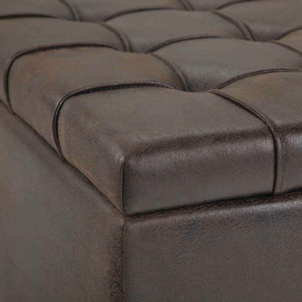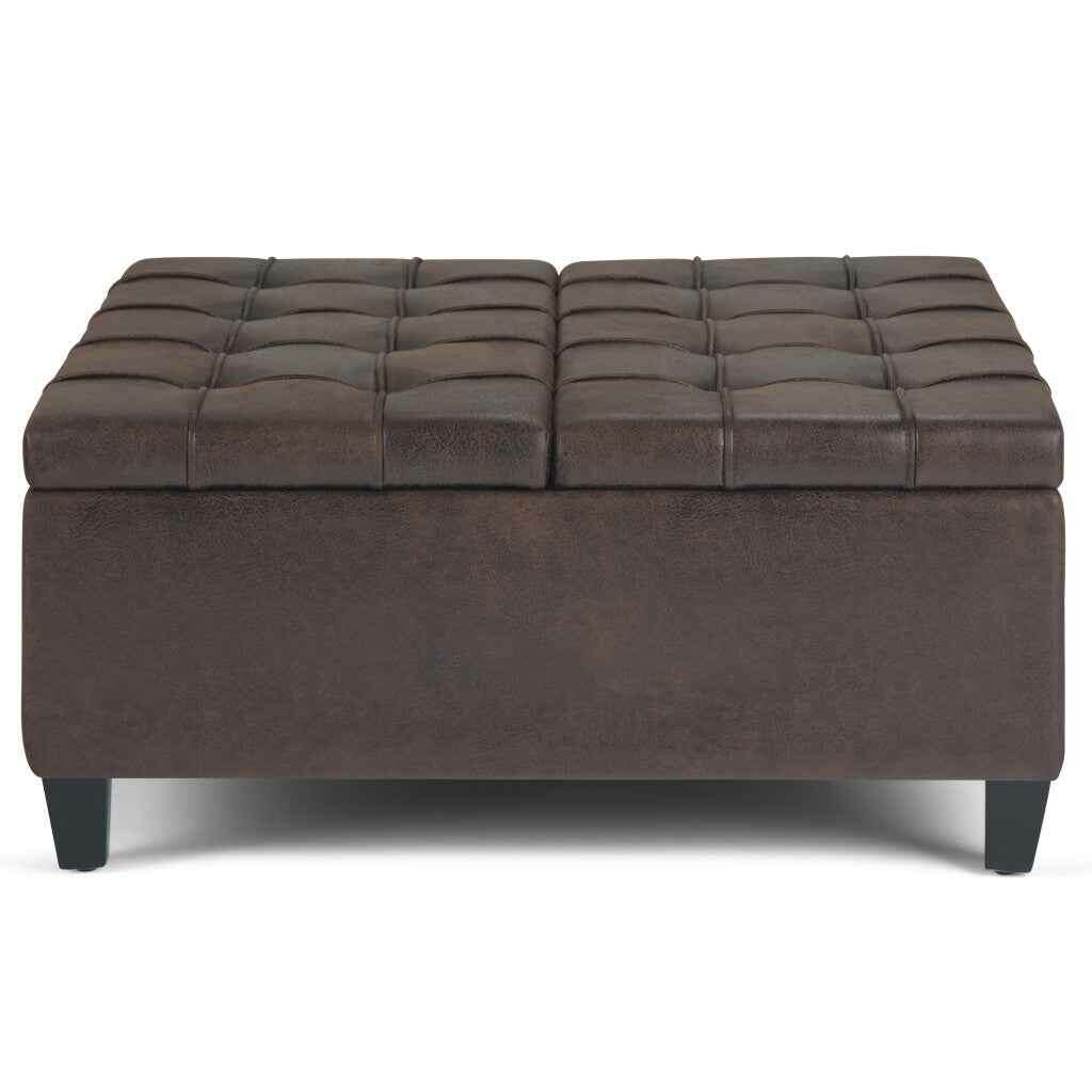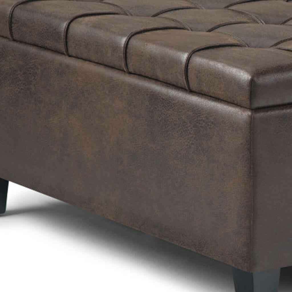 36" Brown and Espresso Leather Cocktail Ottoman With Storage