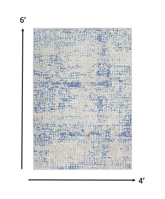 4' X 6' Blue Gray Abstract Dhurrie Area Rug