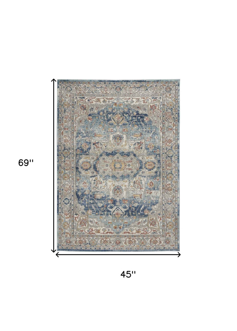 4' X 6' Ivory And Blue Oriental Power Loom Non Skid Area Rug