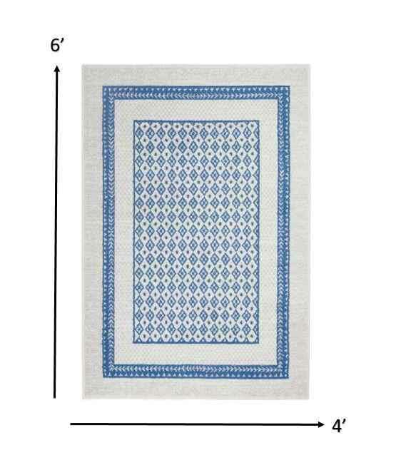 4' X 6' Navy Blue Geometric Dhurrie Area Rug