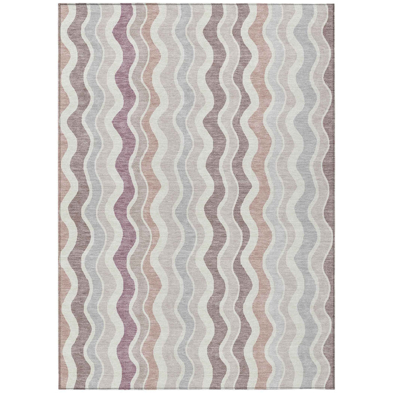 5' X 8' Blush Ivory And Taupe Striped Washable Indoor Outdoor Area Rug