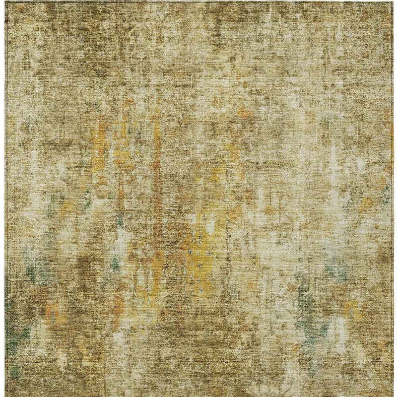 5' X 8' Brown Beige And Gold Abstract Washable Indoor Outdoor Area Rug