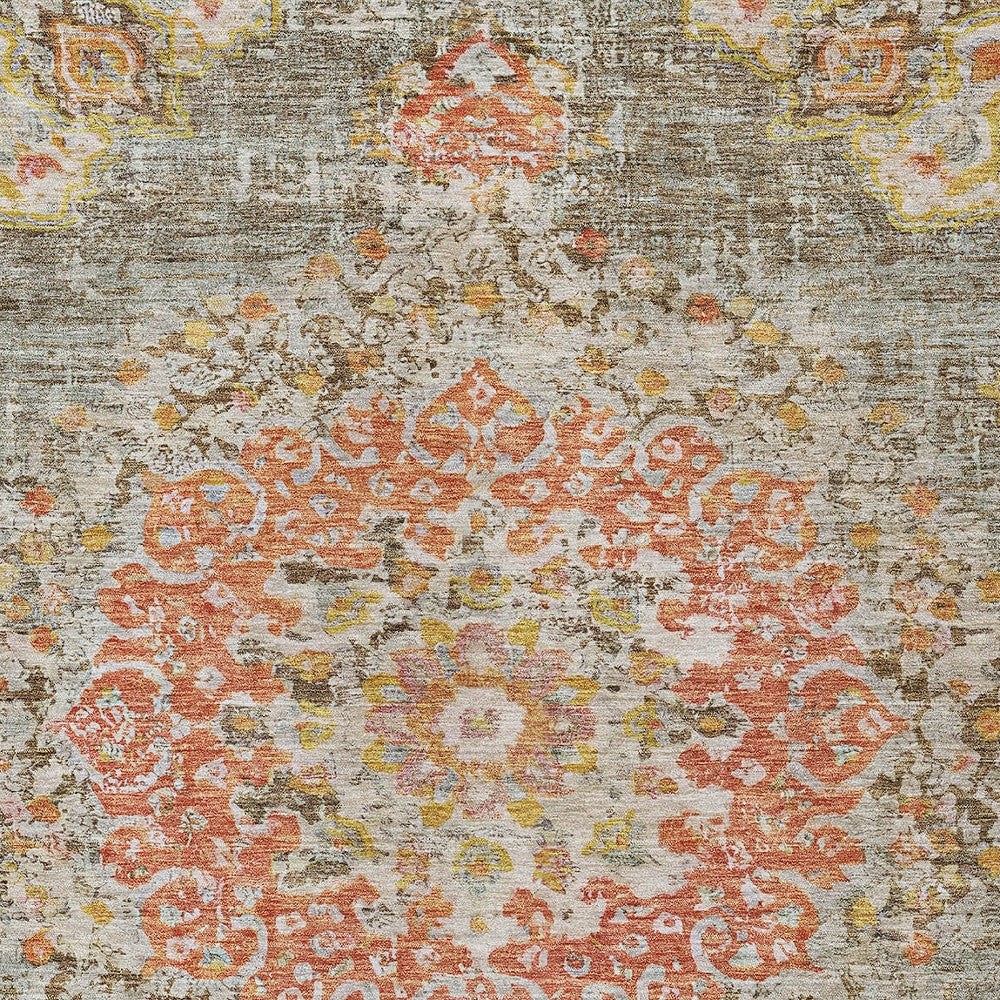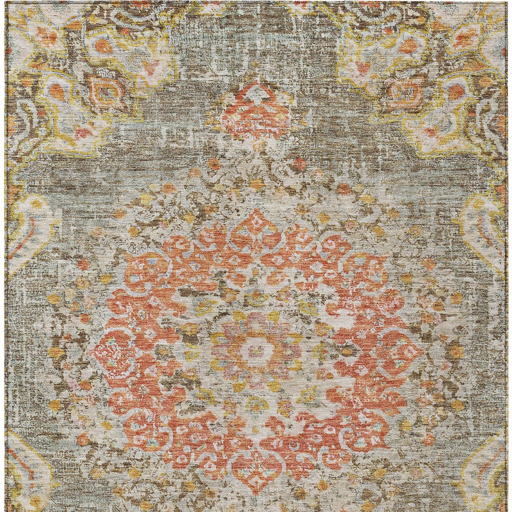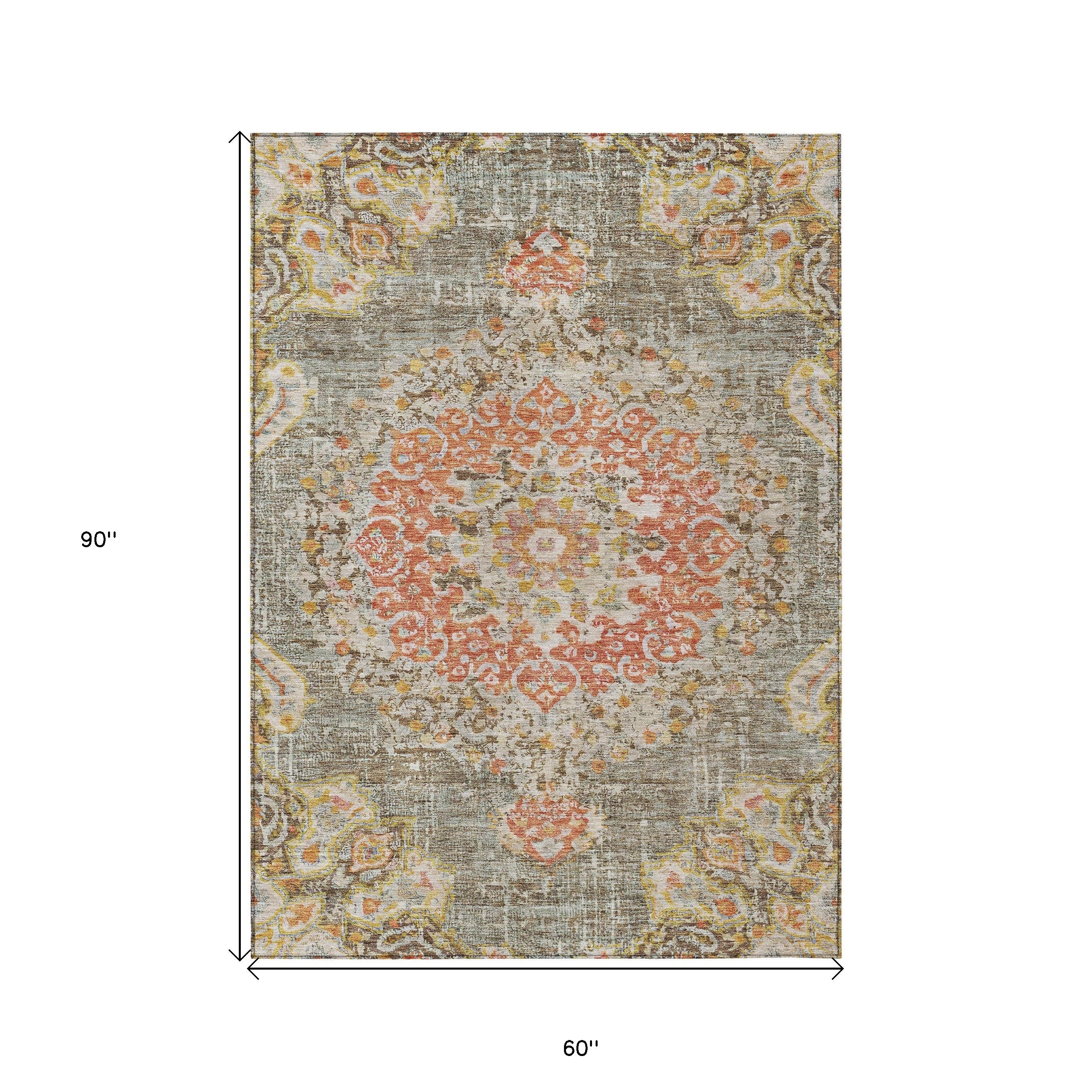 5' X 8' Brown Floral Medallion Washable Indoor Outdoor Area Rug