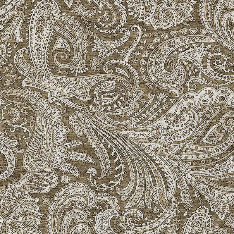 5' X 8' Chocolate Beige And Ivory Paisley Washable Indoor Outdoor Area Rug