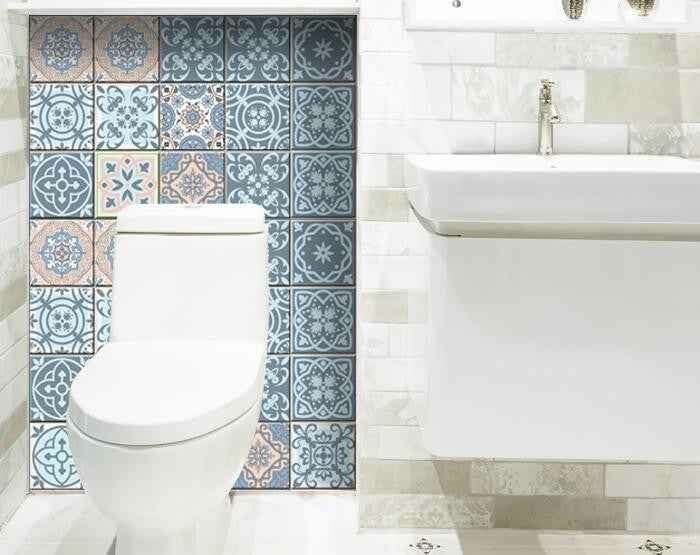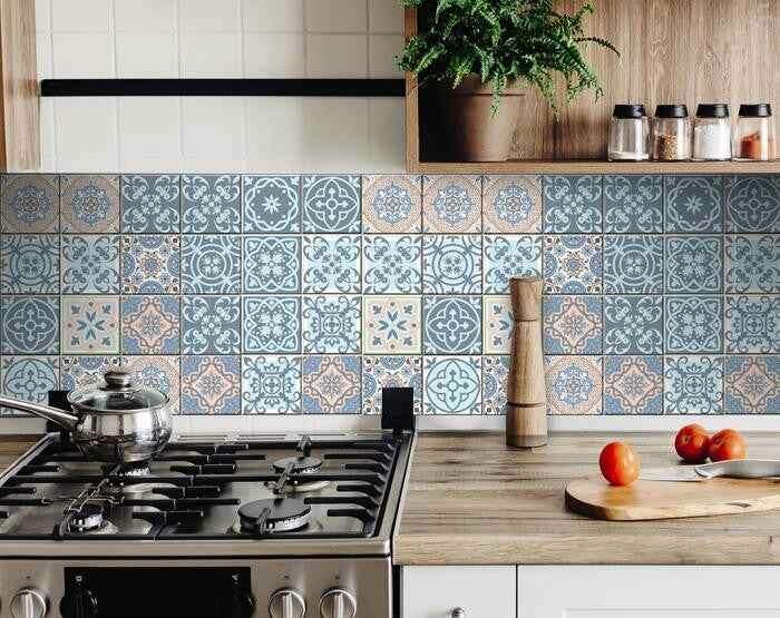 The possibilities are endless with these 6" x 6" Baby Blue and Peach Mosaic Peel and Stick Removable Tile stickers. These fabulous peel and stick tiles will add sophisticated flair and design to your kitchen backsplash, fireplace mantel, stair treads, half wall, bathroom or nook. These 6" square tile stickers are an easy, no mess solution to complete a personalized and colorful room makeover. Easy to apply on any clean dry flat surface, and easy to remove. Multi use and multi-room appeal make this design option is perfect for renters, landlords, college students and homeowners alike. Peel and stick tile decals make it easy to turn your space into a home. Removable without damage to surfaces. One kit contains 24 stickers. Kit includes multiple design styles and colorations to be displayed in any arrangement you choose.
