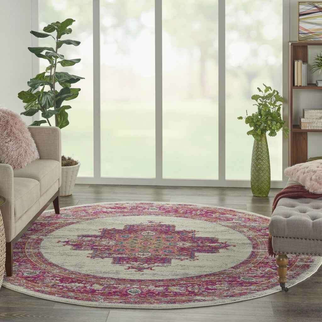 8' Fuchsia Round Power Loom Area Rug