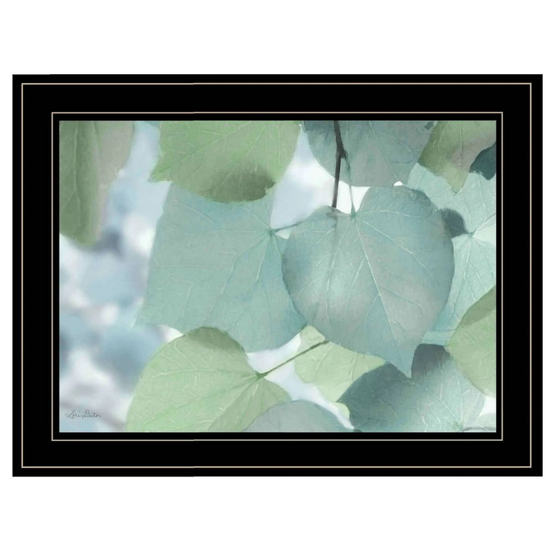 Aqua Leaves 2 Black Framed Print Wall Art