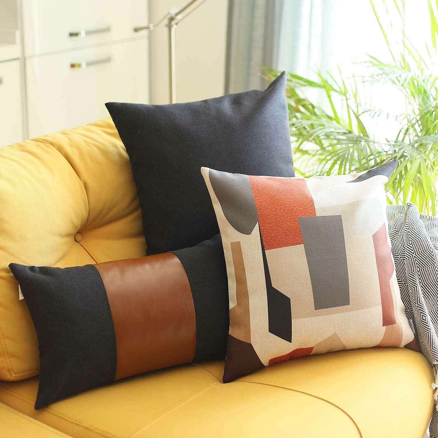 Celebrating the essence of boho-chic styling, this Black Base and Brown Center Lumbar Throw Pillow will spruce up any living space while captivating the gaze of the guests. The elegant charcoal black base flanks a rustic brown vegan faux leather in the middle for a striking contrast. The pillow comprises of polyester, Pvc, and Pu for optimum durability while being OEKO-TEX Standard 100 certified to ensure highest product safety. It sports a recycled poly filling insert for a soft and fluffy feel, making it an ideal piece for your bedroom, living room, or sitting space. Made to stand the test of fashion and function, this pillow is handcrafted in Turkey for optimum quality while the hidden zipper provides a seamless finish all-around for a smooth feel on the touch. Simple yet exclusive in its color palette and design pattern, this comfortable lumbar pillow will add a classic edge to any modern or bohemian setting. 12” x 20” x 1”