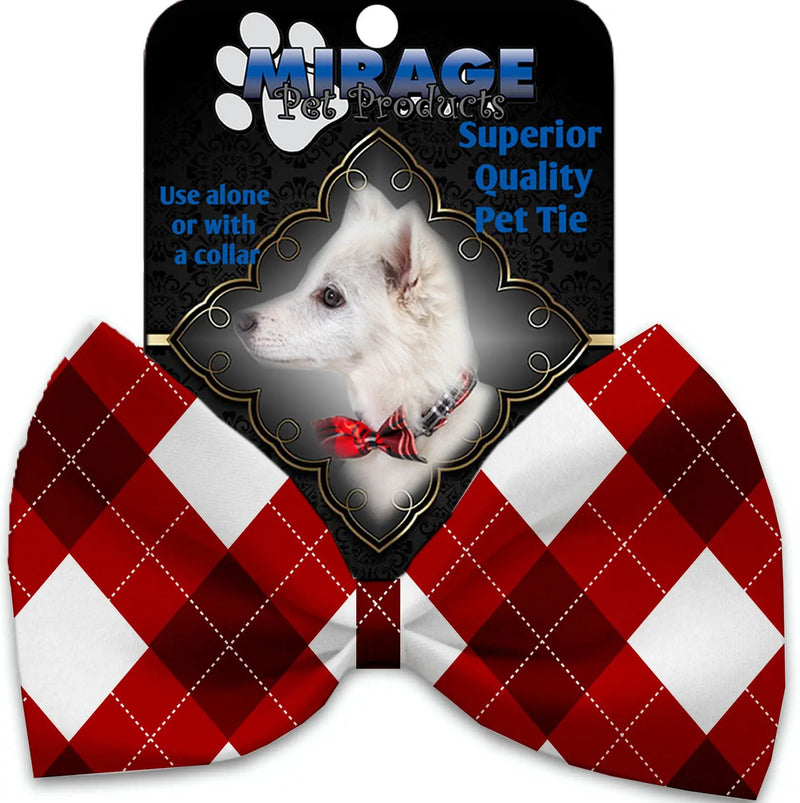 Candy Cane Argyle Pet Bow Tie Collar Accessory With Velcro
