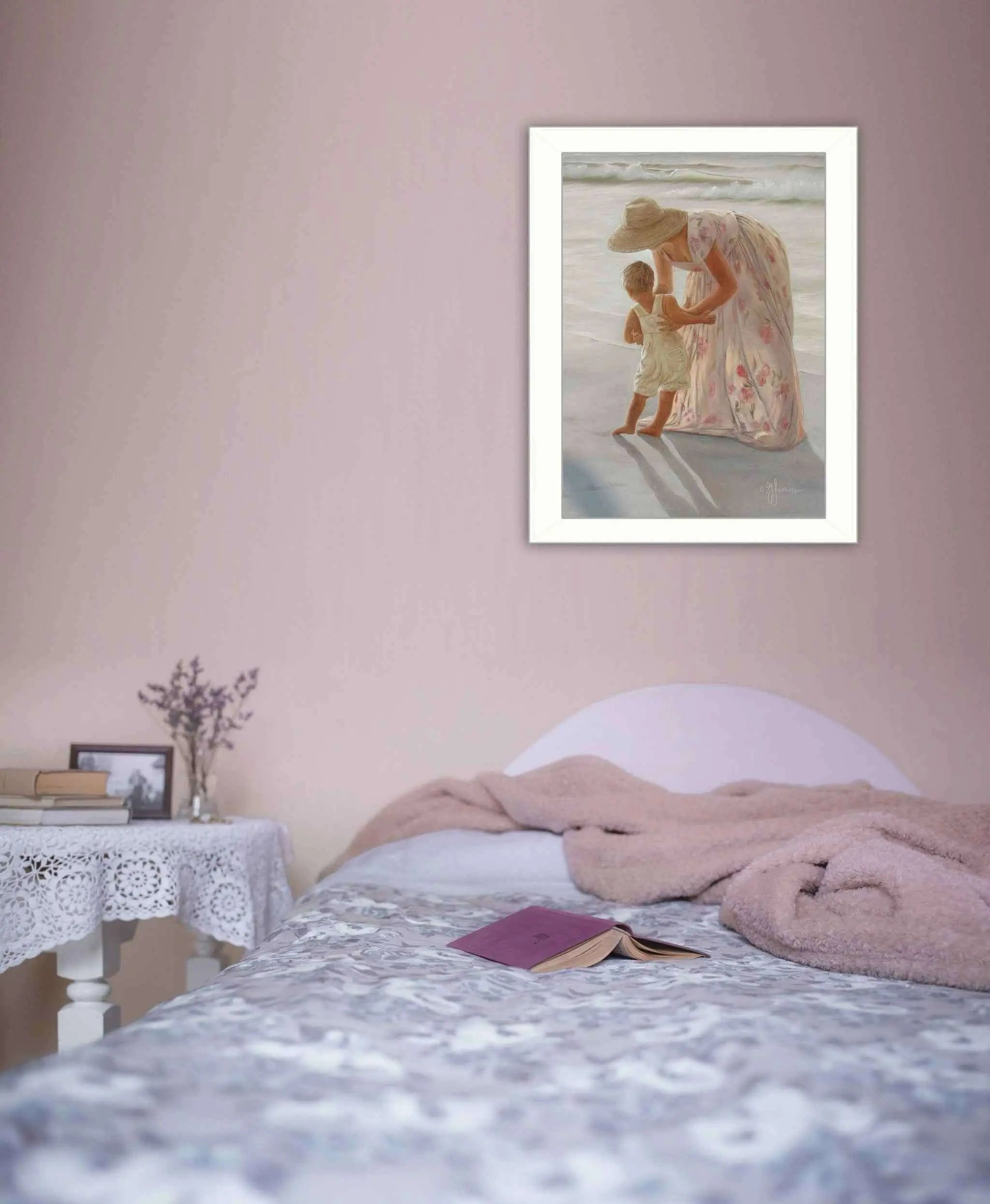 The first time on the beach white framed print wall art is the perfect decorative accessory for your home. This print is a visual artistic expression that allows you to decorate your space in style. Reproduced for you on paper, this hanging decorative accent will be a trendy and fashionable way to dress your walls. Adding this hanging wall art to your space to make your room feel more finished and attractive. Instantly liven up your space with this art that brings color and dimension to your walls. 14 inches H x 18 inches W x 1 inches D