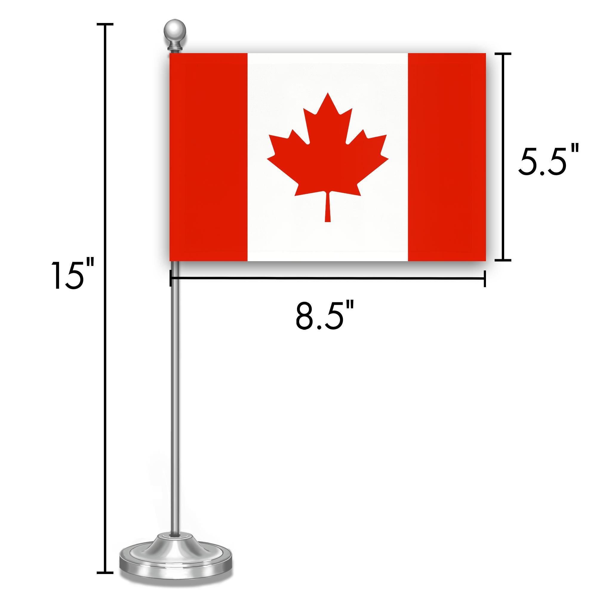 G128 Canada Canadian Deluxe Desk Flag Set | 8.5x5.5 In | Printed 300D Polyester, with Silver Dome and Base, 15" Metal Pole, Decorations For Office, Home and Festival Events Celebration
