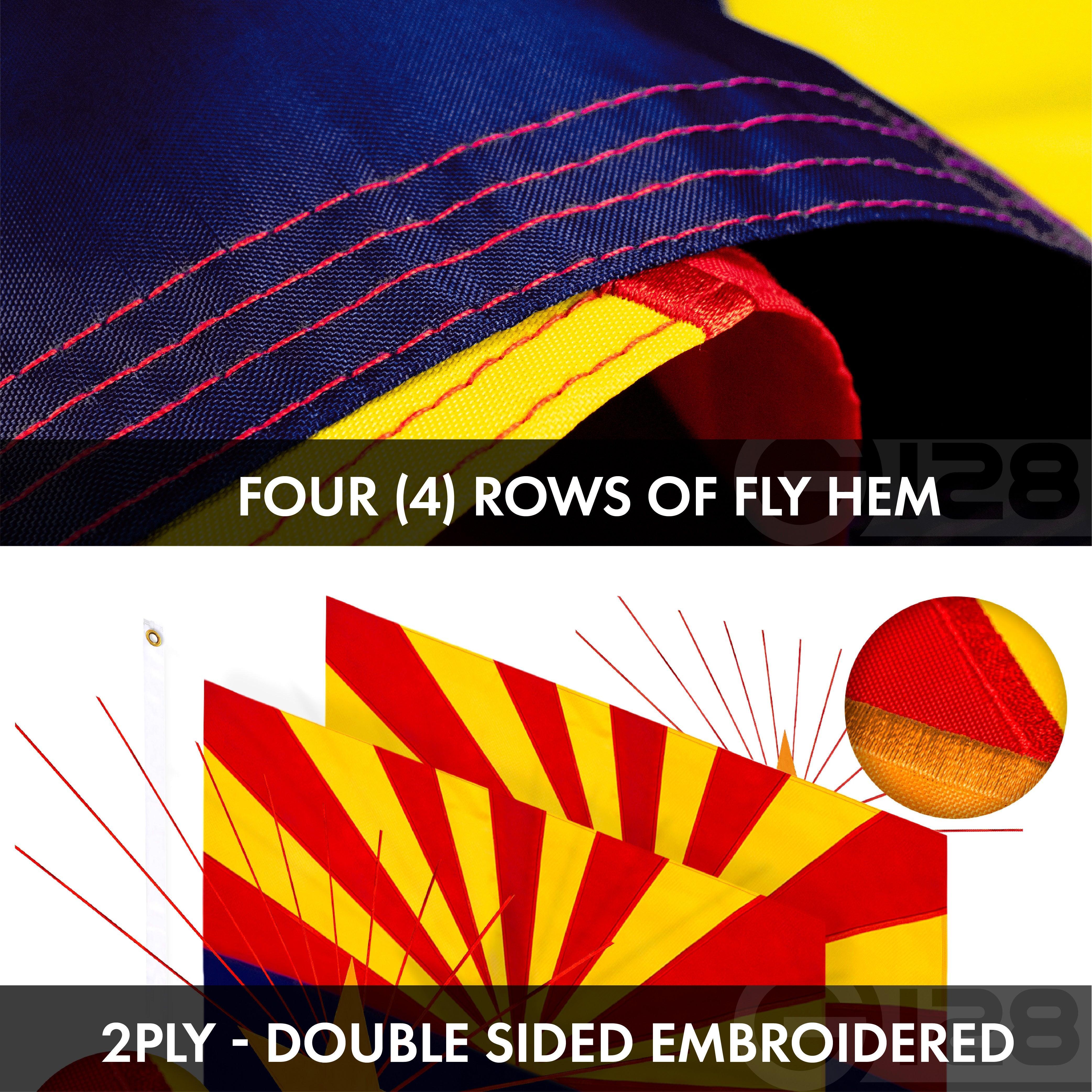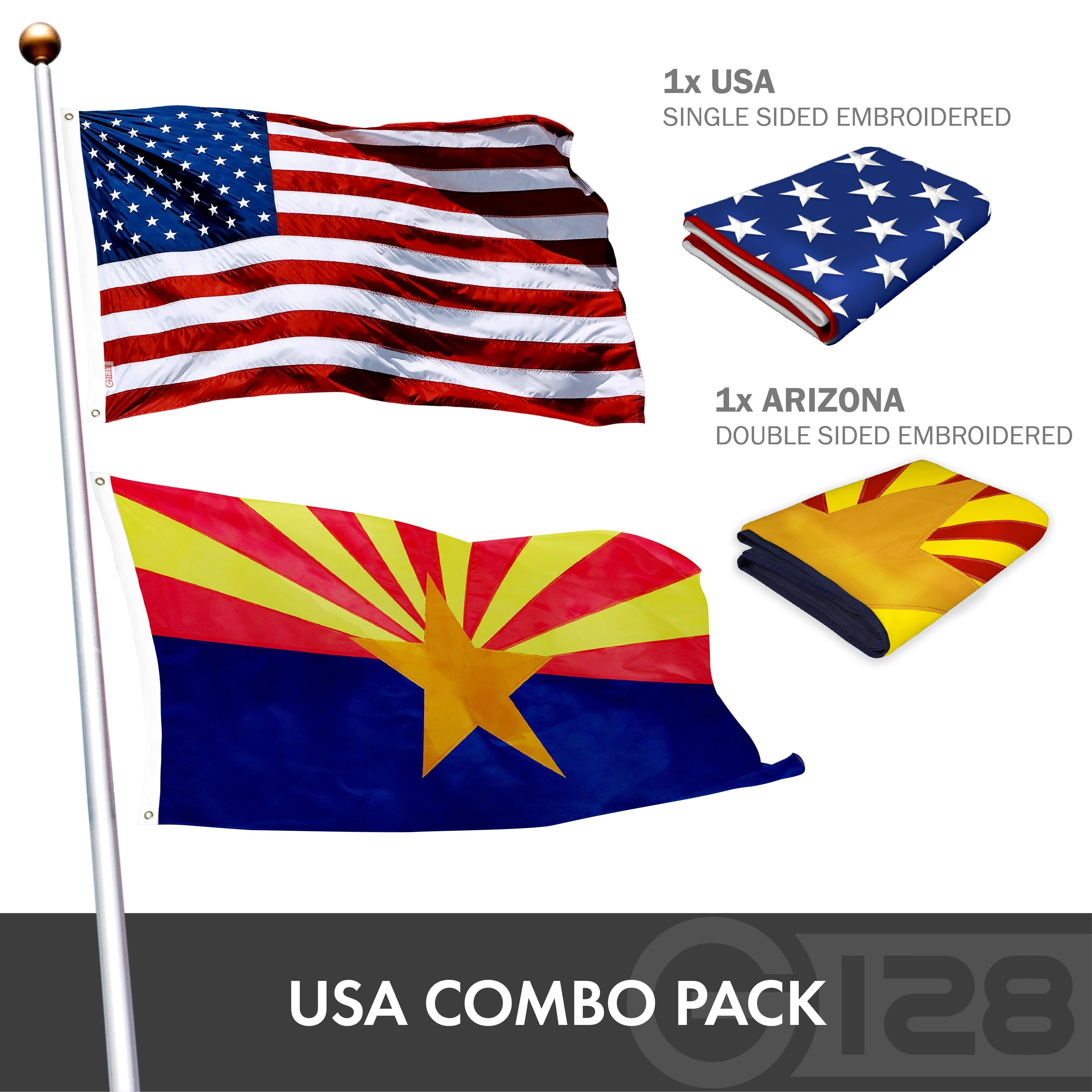 G128 Combo Pack: USA American Flag 3x5 Ft Embroidered Stars & Arizona State Flag 3x5 Ft Embroidered Double Sided 2ply