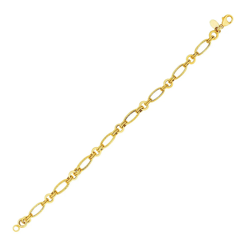 14k Yellow Gold Twisted and Polished Link Bracelet 7.5"