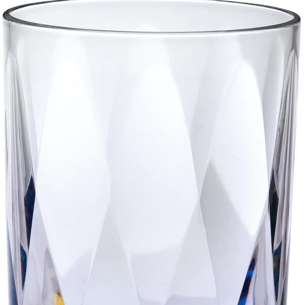 From first sip to last drop, you are certain to savor the taste of your favorite vino with the set of four rainbow geometric acrylic stemmed all purpose wine glass. Whether you are entertaining or simply enjoying a drink by yourself, a quality set of stemware is a must-have. From wine to cocktails, the versatility of stemmed glassware adds a touch of refinement to any drink. Includes a decorative clear rim to enhance the look and elegance of the glass. Beautifully machine embossed to give your glassware a bit of design, character, and dimension. Bring a pop of personality to your kitchen or dining room with this geometric pattern. The texture on this surface not only looks great but feels cool in your hand. Every drink deserves the perfect glass, and so do you. 8.25-inch H x 3.38-inch W x 3.38-inch D