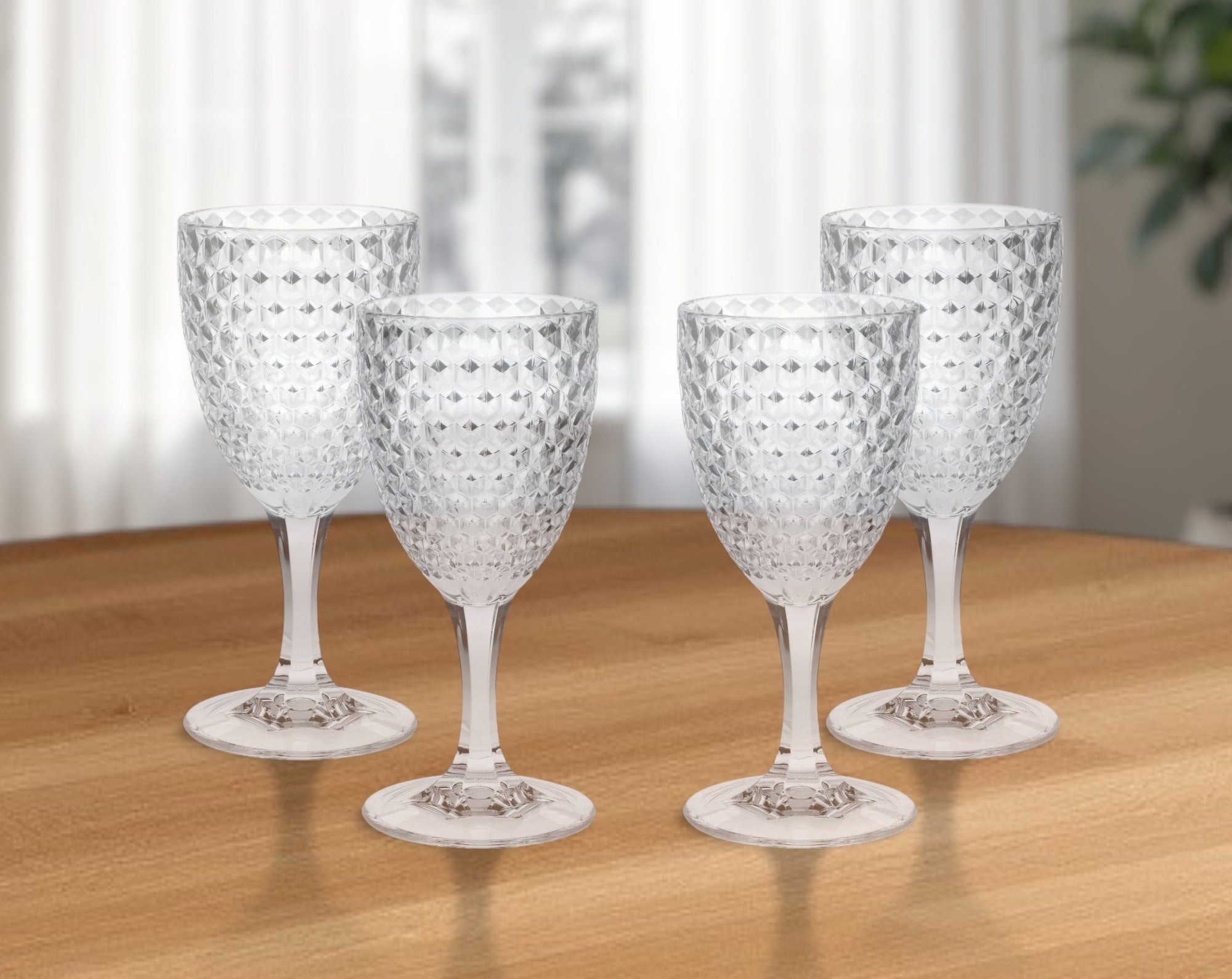 Set of Four Clear Diamond Acrylic Stemmed All Purpose Wine Glass