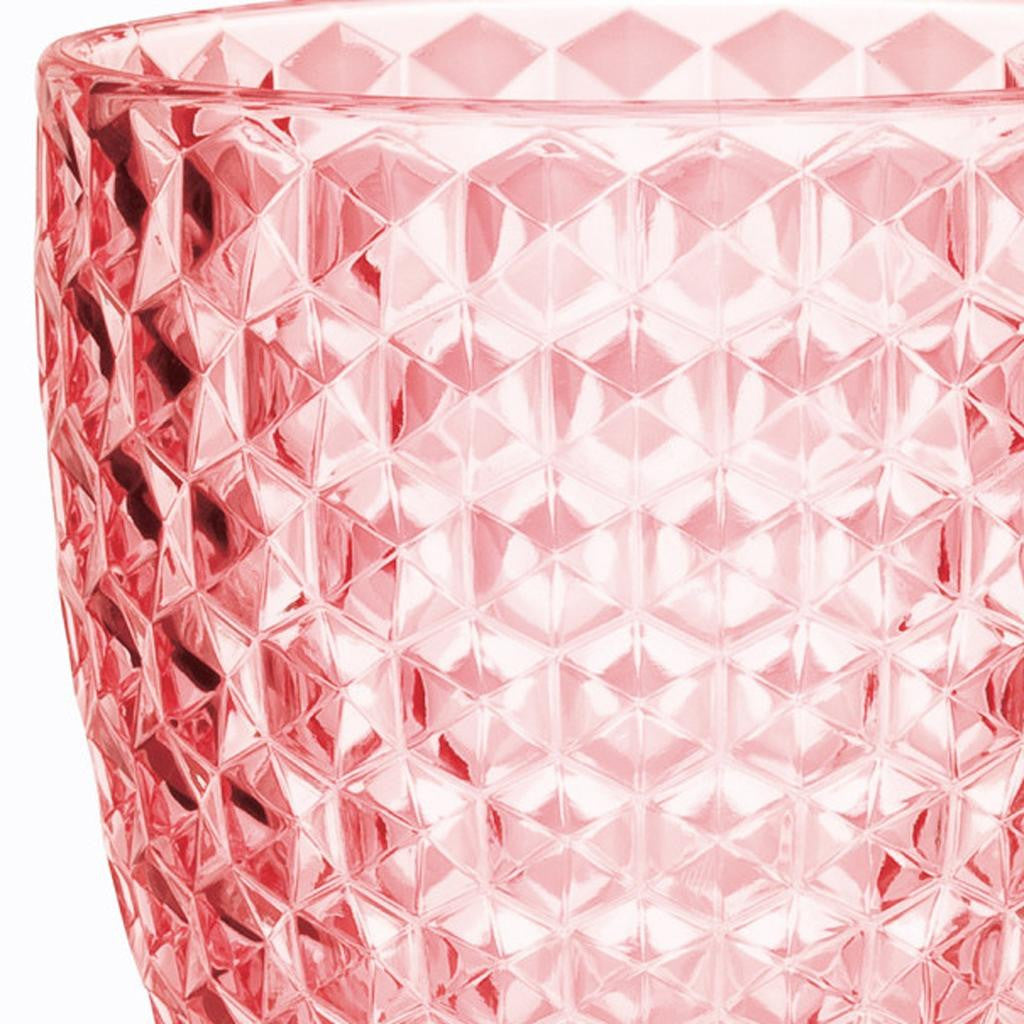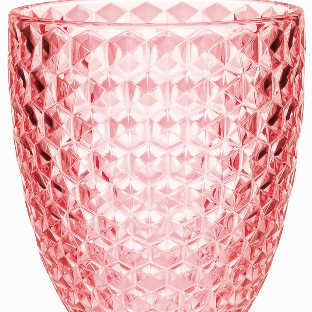 Indulge in your favorite wines, cocktails, or other beverages with this set of four pink diamond acrylic stemmed all purpose wine glass. Elevate any occasion with a set of stunning stemware that is as functional as it is beautiful. Stemmed drinkware allows you to hold your drink without the heat of your hand impacting it’s contents. The addition of a machine embossed design gives this glass special character and dimension. Bring a pop of personality to your kitchen or dining room with this diamond pattern. The texture on this surface not only looks great but feels cool in your hand. Whatever your beverage preference, you are certain to enjoy the enhanced flavor and taste that comes with consuming from the proper vessel. 7.38-inch H x 3.38-inch W x 3.38-inch D