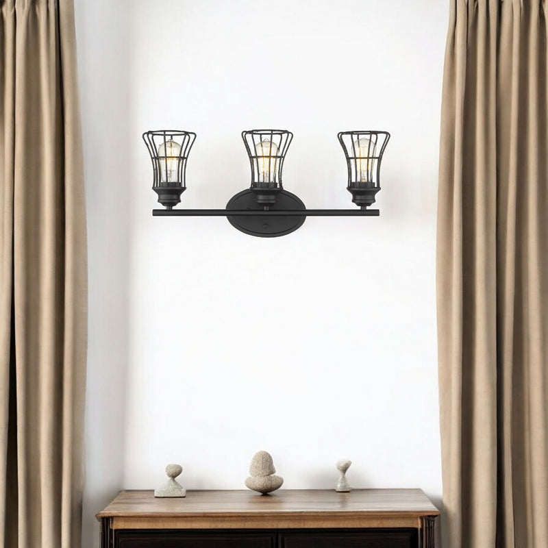 Three Light Matte Black Cage Wall Sconce