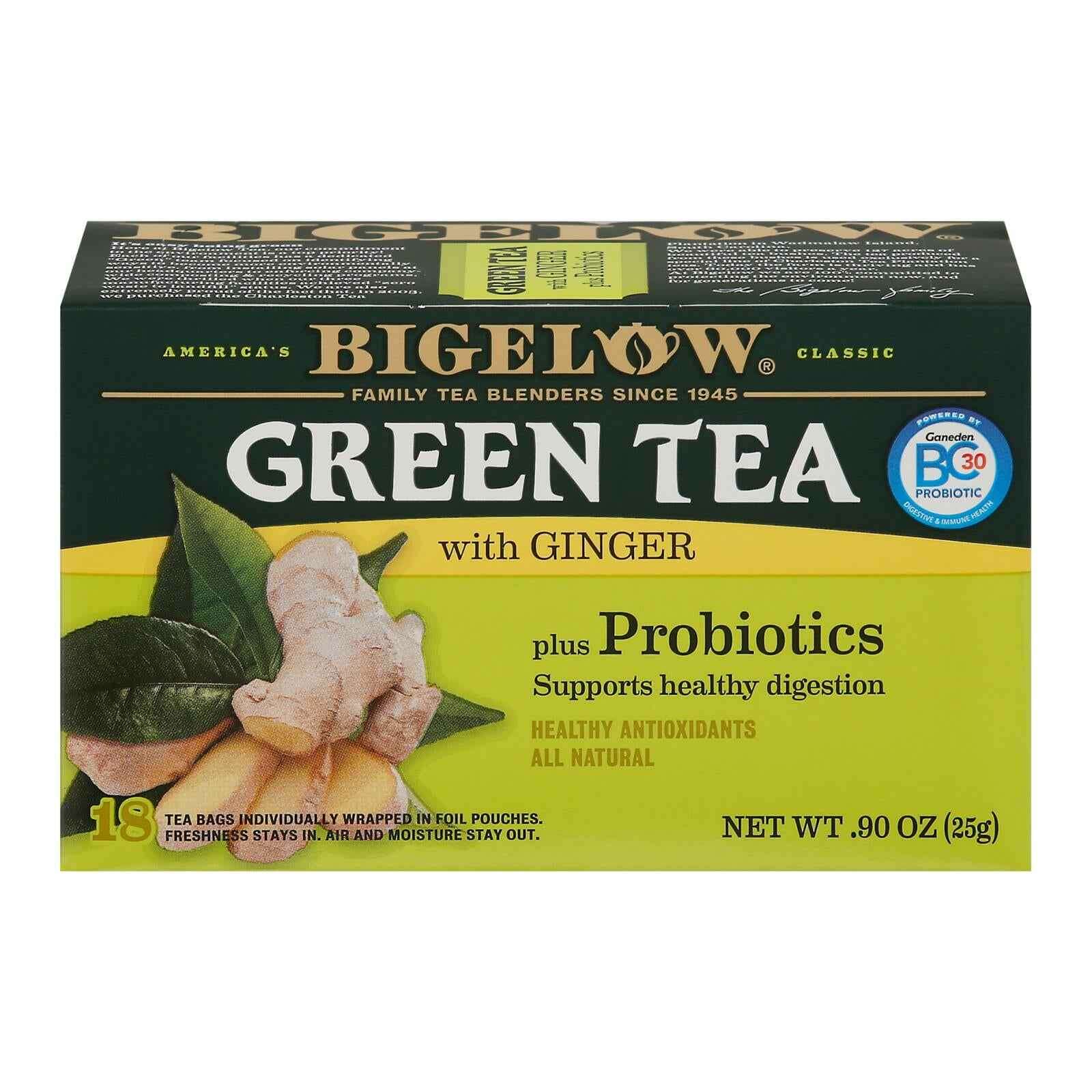 America's classic. Family tea blenders since 1945. Powered by ganeden bc 30 probiotic. Plus probiotics. Supports healthy digestion. Healthy antioxidants. All natural. Protected in foil - because flavor matters. Our family selects ingredients so carefully that they must protect them in foil to allow you to experience their full: flavor; freshness; aroma. Bigelow green tea blend: green tea with ginger: our family is proud of our recipe: each ingredient below has been carefully selected by the bigelow family to deliver an uncompromised tea experience. Our blend has been combined with ganeden- bc30, an innovation that helps maintain a healthy balance in your digestive tract when used as part of a healthy diet. Proud to be: zero-landfill company. Ethical tea partnership. It's easy being green here at bigelow tea, our commitment to the environment is a top priority! each of our facilities has a dedicated "green" team focused on identifying ways to become more environmentally sensitive, from installing solar panels at our headquarters to enforcing company-wide composting & recycling programs. We were thrilled when our three manufacturing facilities achieved "zero waste to landfill" status. We are also extremely proud of the fact that, in 2003. We purchased the charleston tea plantation in wadmalaw island. South carolina. We were able to preserve 127 acres of beautiful tea bushes. The tea produced from these bushes is used exclusively for a special line of charleston tea plantation teas. Today the farm is thriving and has over 60,000 visitors a year. At bigelow we are 100% committed to protecting the environment now, and for generations to come! - the bigelow family.
