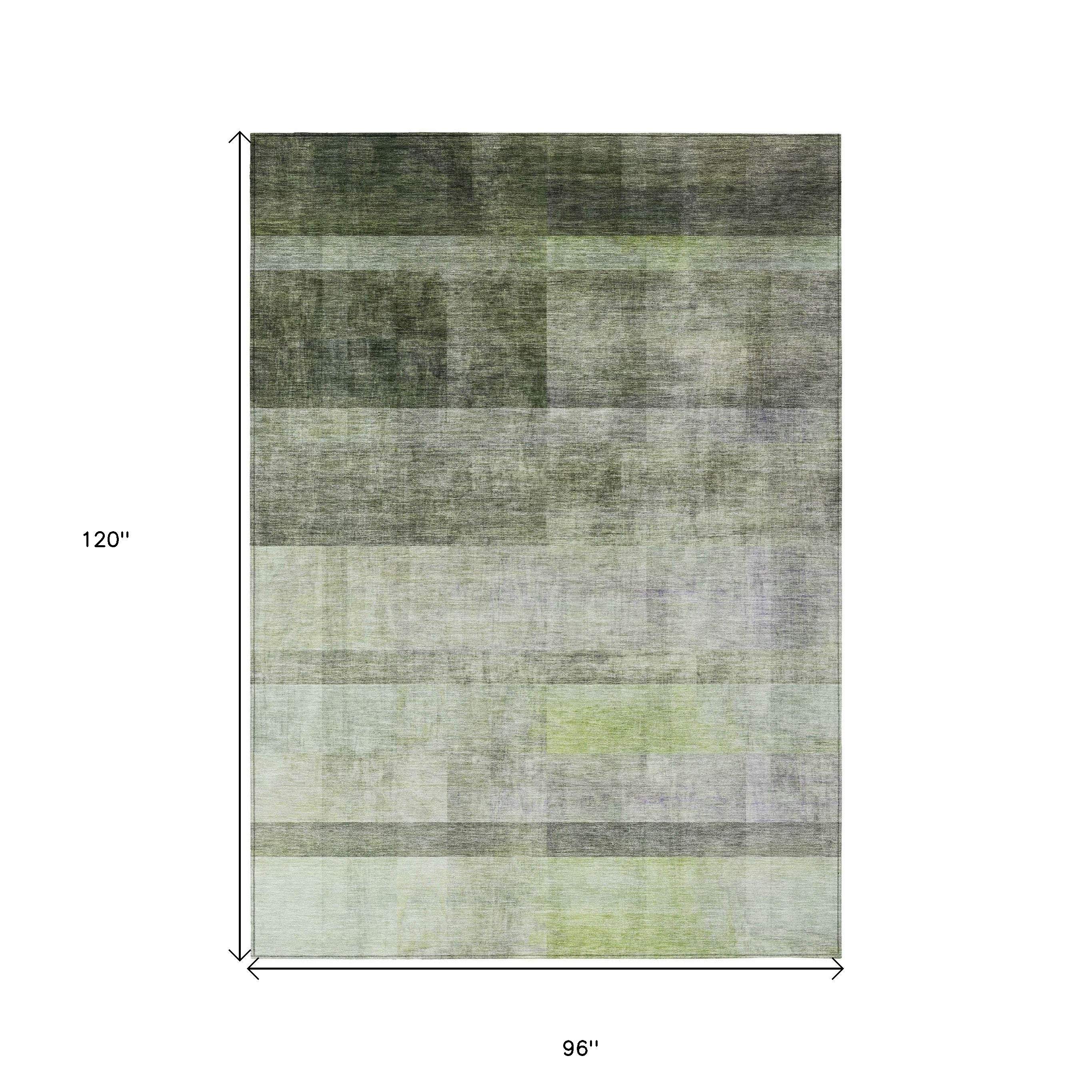 8' X 10' Olive Green Ombre Washable Non Skid Indoor Outdoor Area Rug