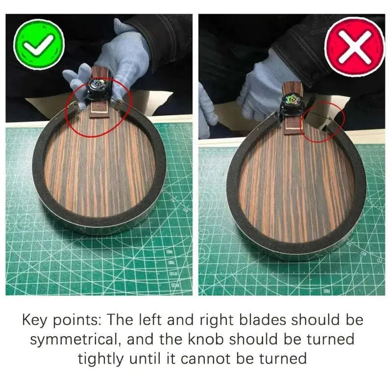 Testing: Without attaching the rubber to the blade, follow steps 3-4, then flip the blade to check if the curvature of the bow blade matches that of the blade (ensure there is no significant gap between the bottom of the rubber attachment area and the bow blade). If a noticeable gap exists, increase the rotation force appropriately until the curvature aligns, then proceed to step 6 to remove the bow blade.
