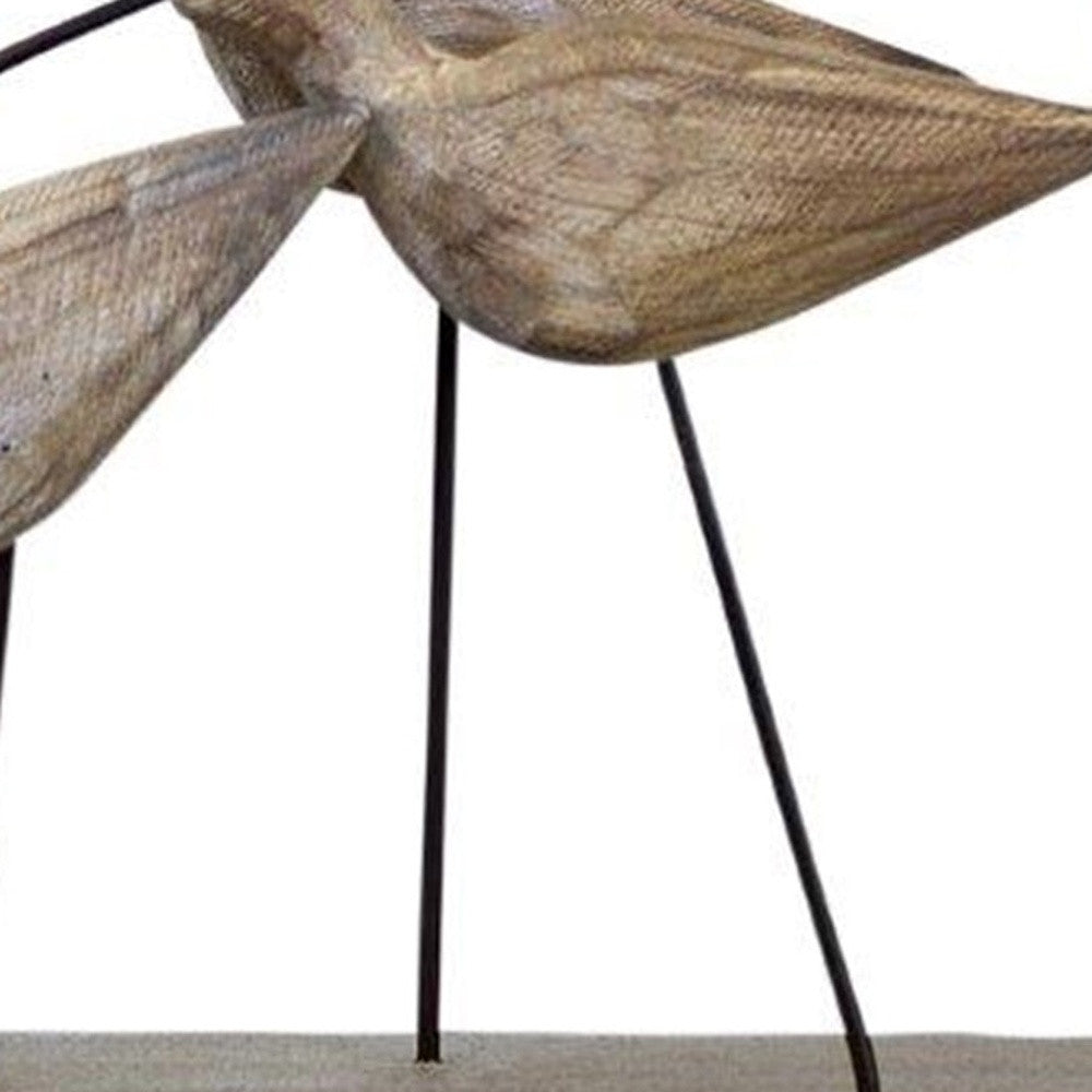 13" Natural Metal And Wood Coastal Sand Plover Birds Tabletop Sculpture - GreatEagleInc