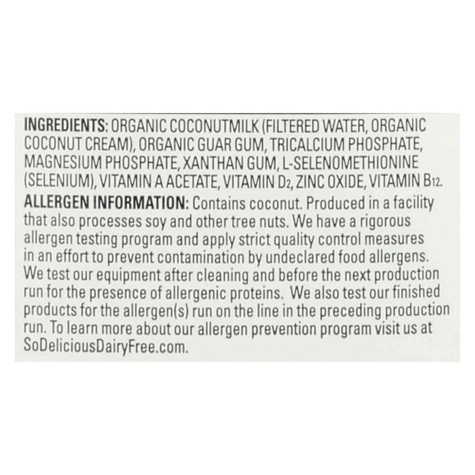 So Delicious Coconut Milk Beverage - Unsweetened - Case Of 12 - 32 Fl Oz.