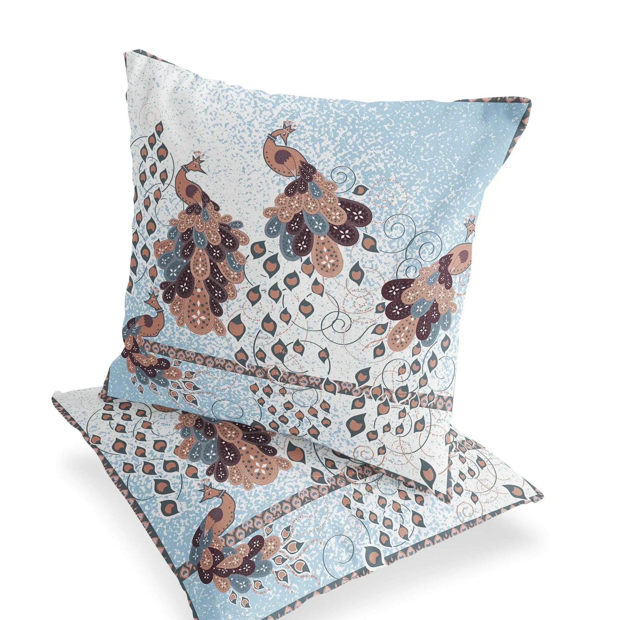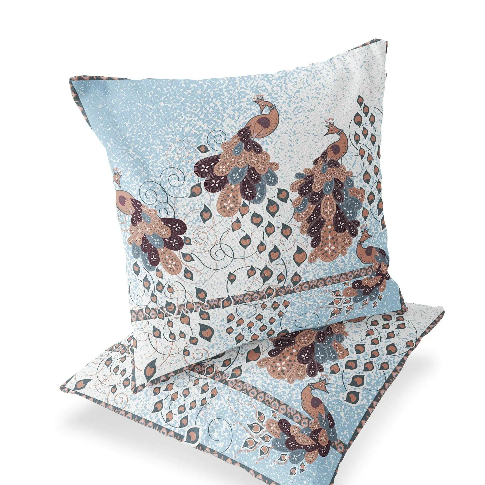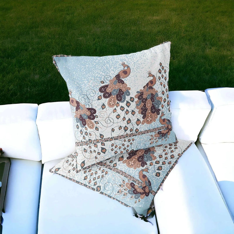 Set of Two 16" X 16" Brown Peacock Blown Seam Indoor Outdoor Throw Pillow
