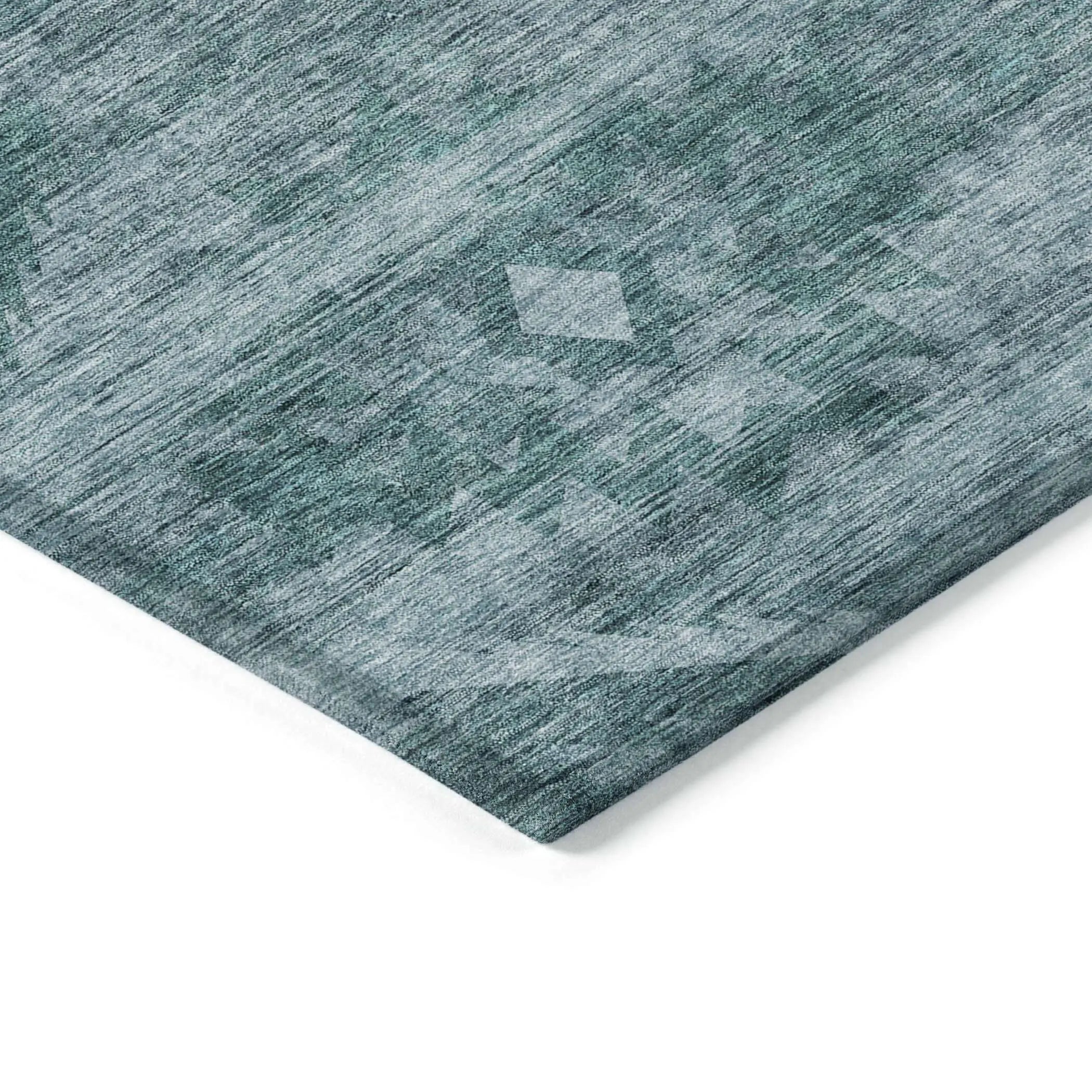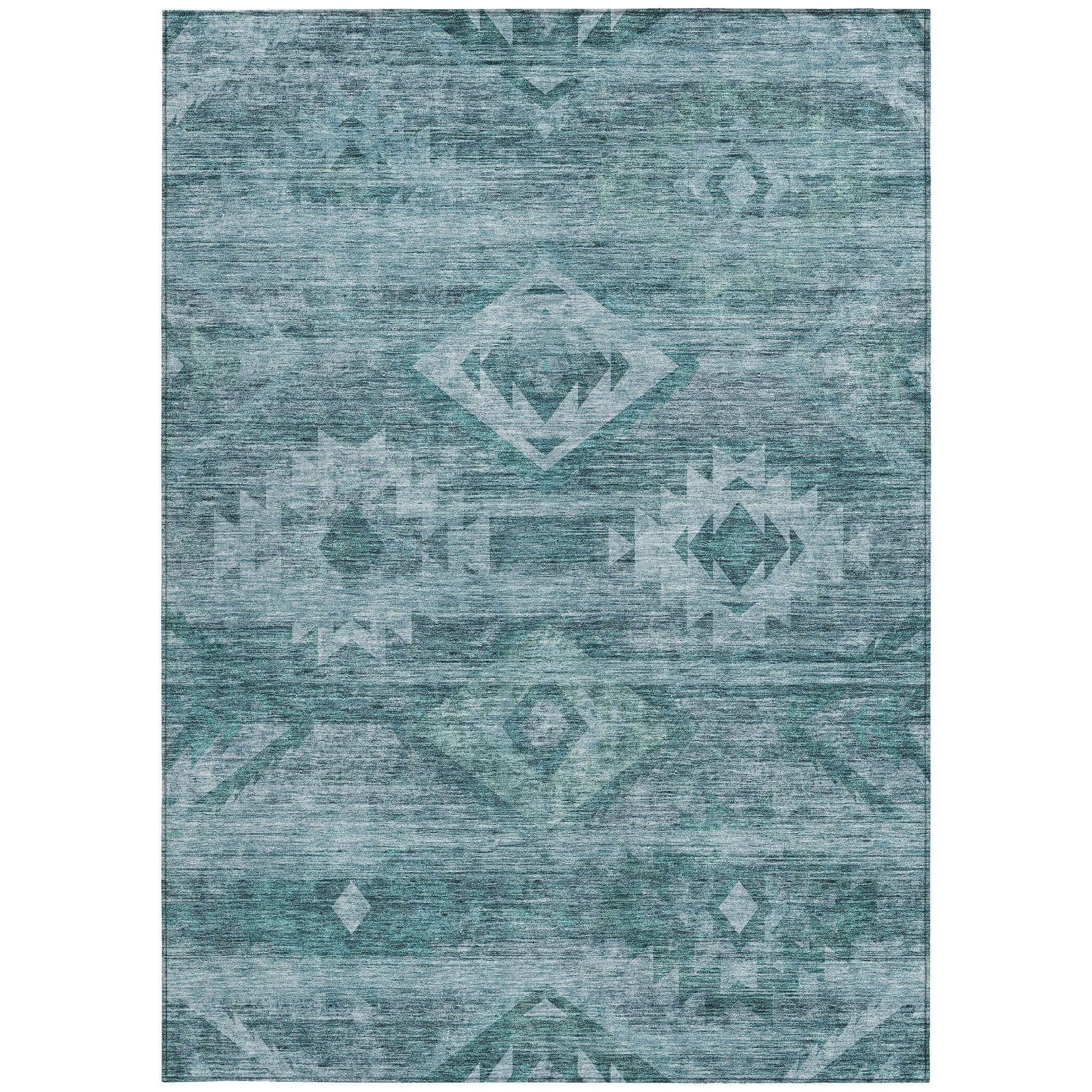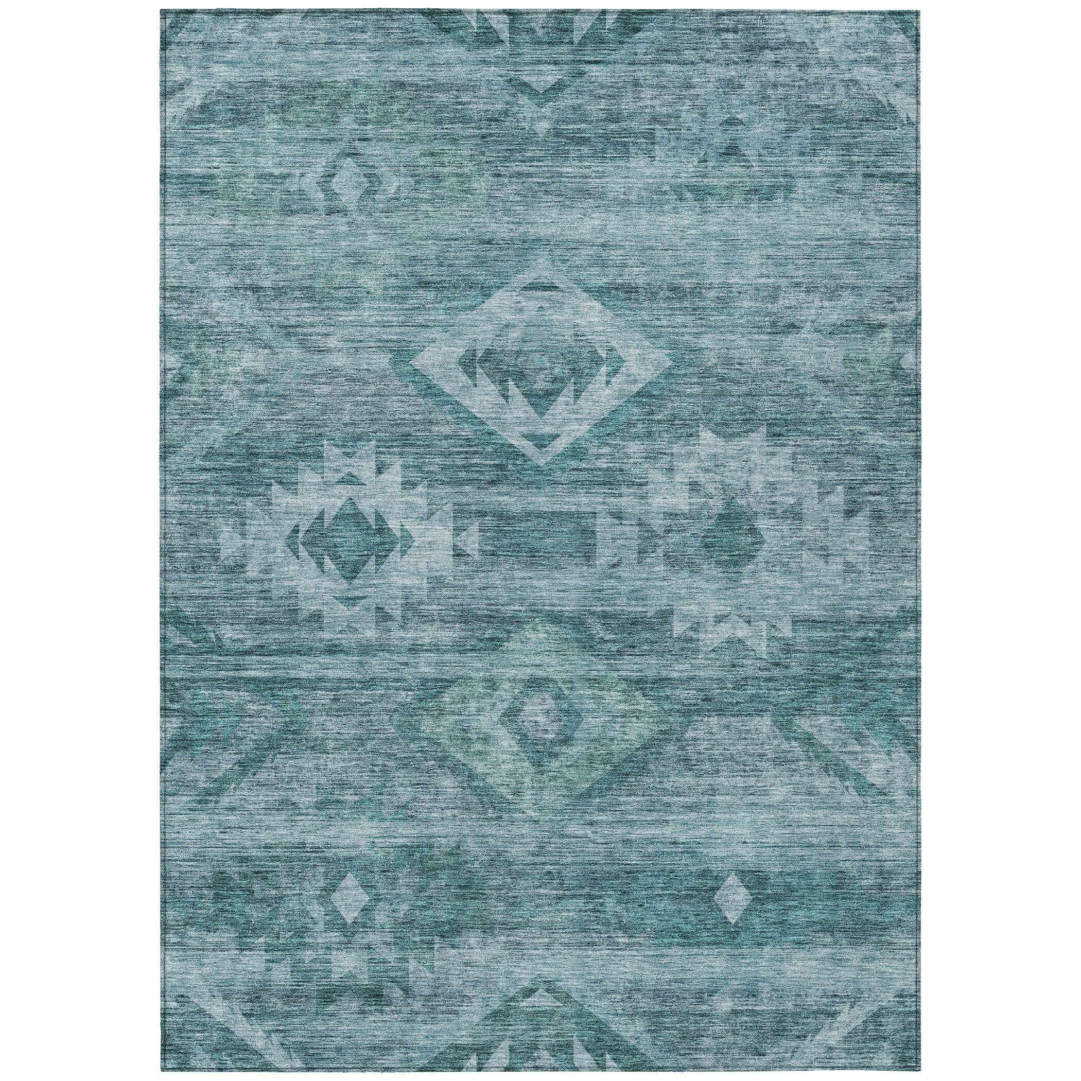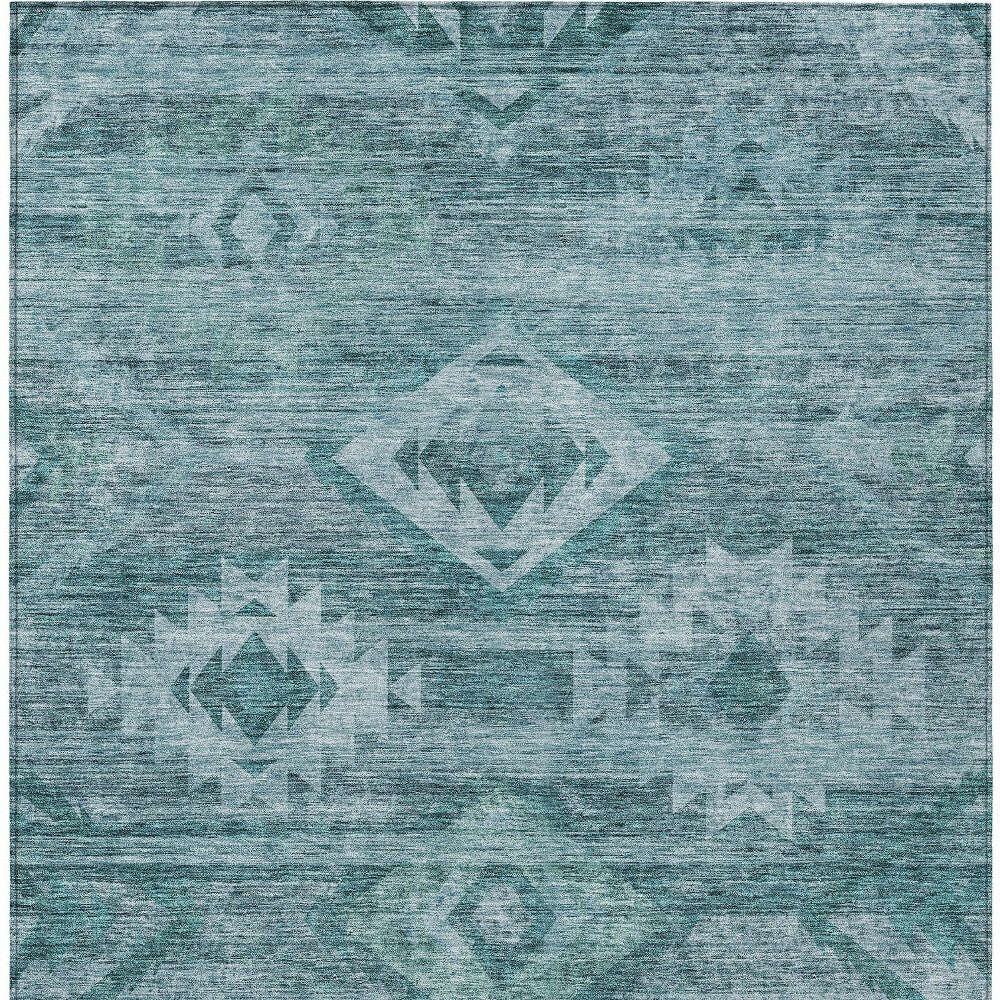 10' X 14' Teal Blue And Aqua Southwestern Washable Indoor Outdoor Area Rug