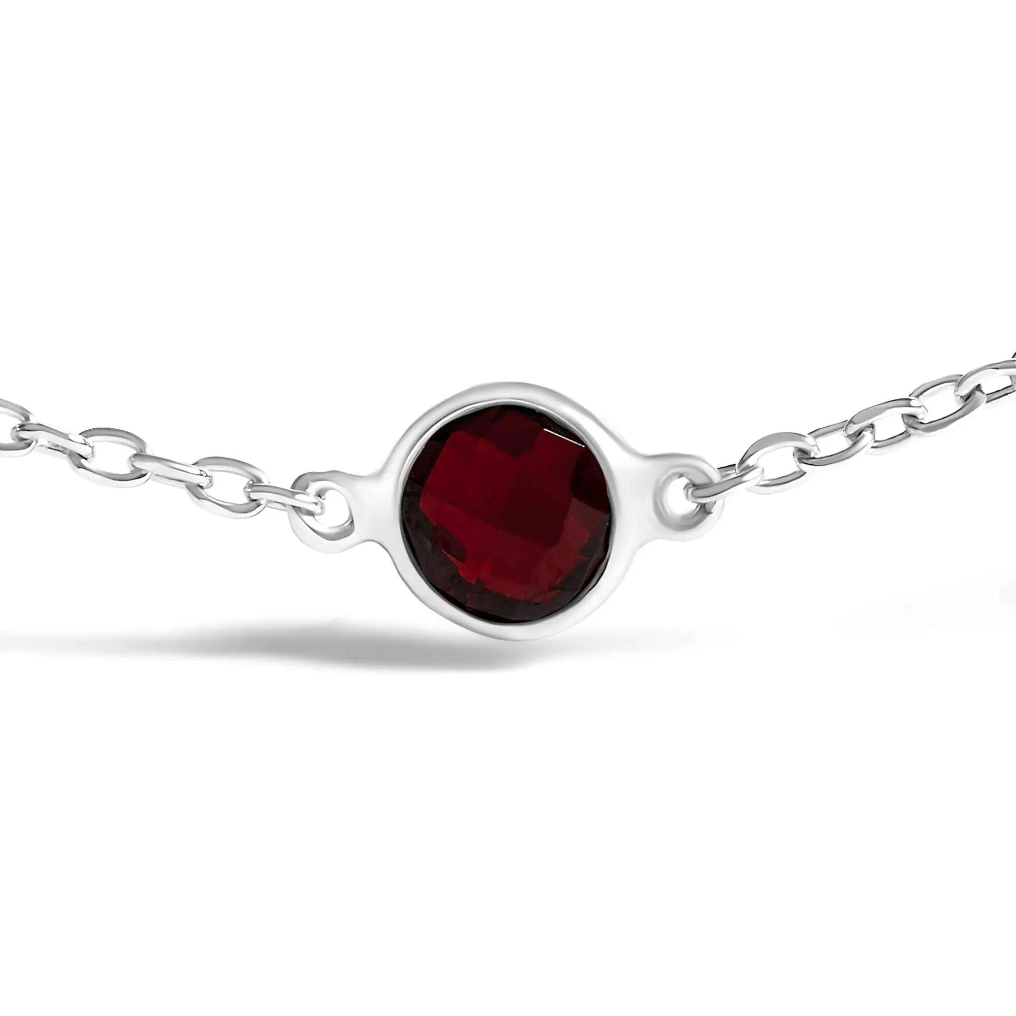 Embrace timeless elegance with this exquisite bolo bracelet, delicately crafted from rhodium-plated .925 sterling silver. Destined to enchant, it features five natural red garnets, each securely bezel-set and sparkling with a sophisticated checkerboard cut, varying from 4x4 mm to 5x5 mm. These gems, untouched by any treatment, catch the light in vibrant plays of deep crimson, embodying passion and allure. The adjustable bolo clasp ensures a perfect fit for wrist sizes between 4 and 10 inches, offering both comfort and style. This piece not only adds a touch of luxury to any outfit but also serves as a talisman of love and vitality, making it an ideal gift or a personal treasure.