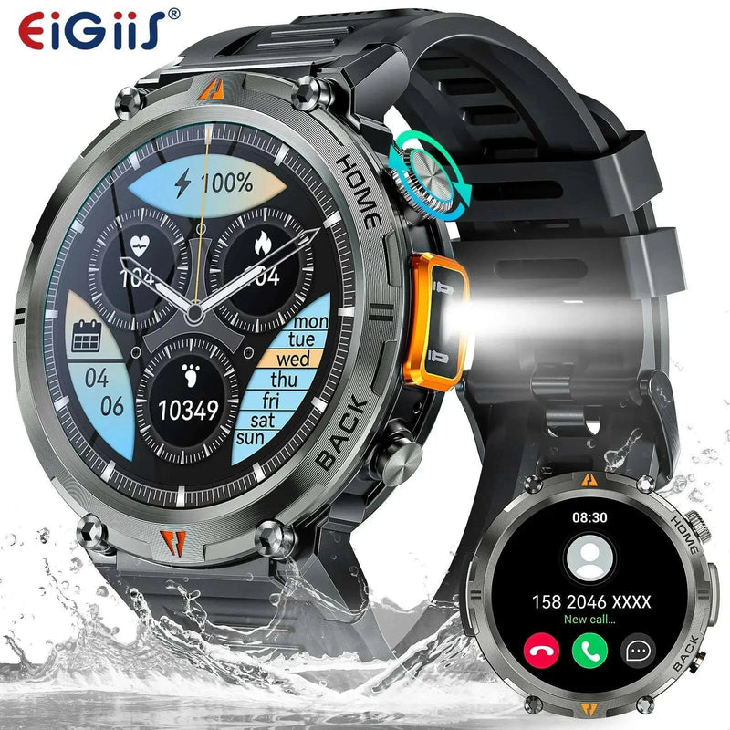 EIGIIS KE3 2025 New Bluetooth Call smartwatch for men Full Touch Screen With Health Monitor heart rate Flashlight Smart watch