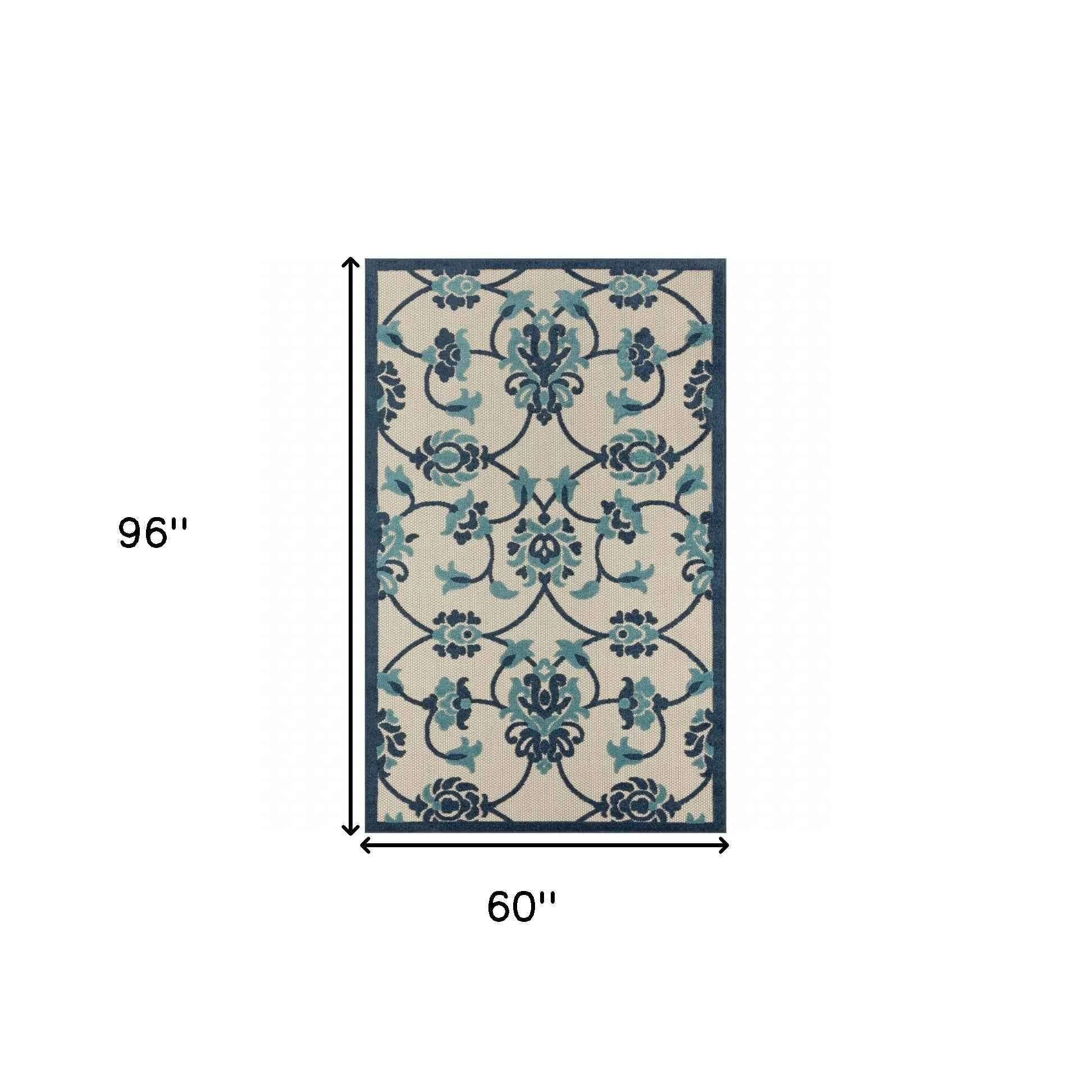 5' X 8' Blue Floral Non Skid Indoor Outdoor Area Rug