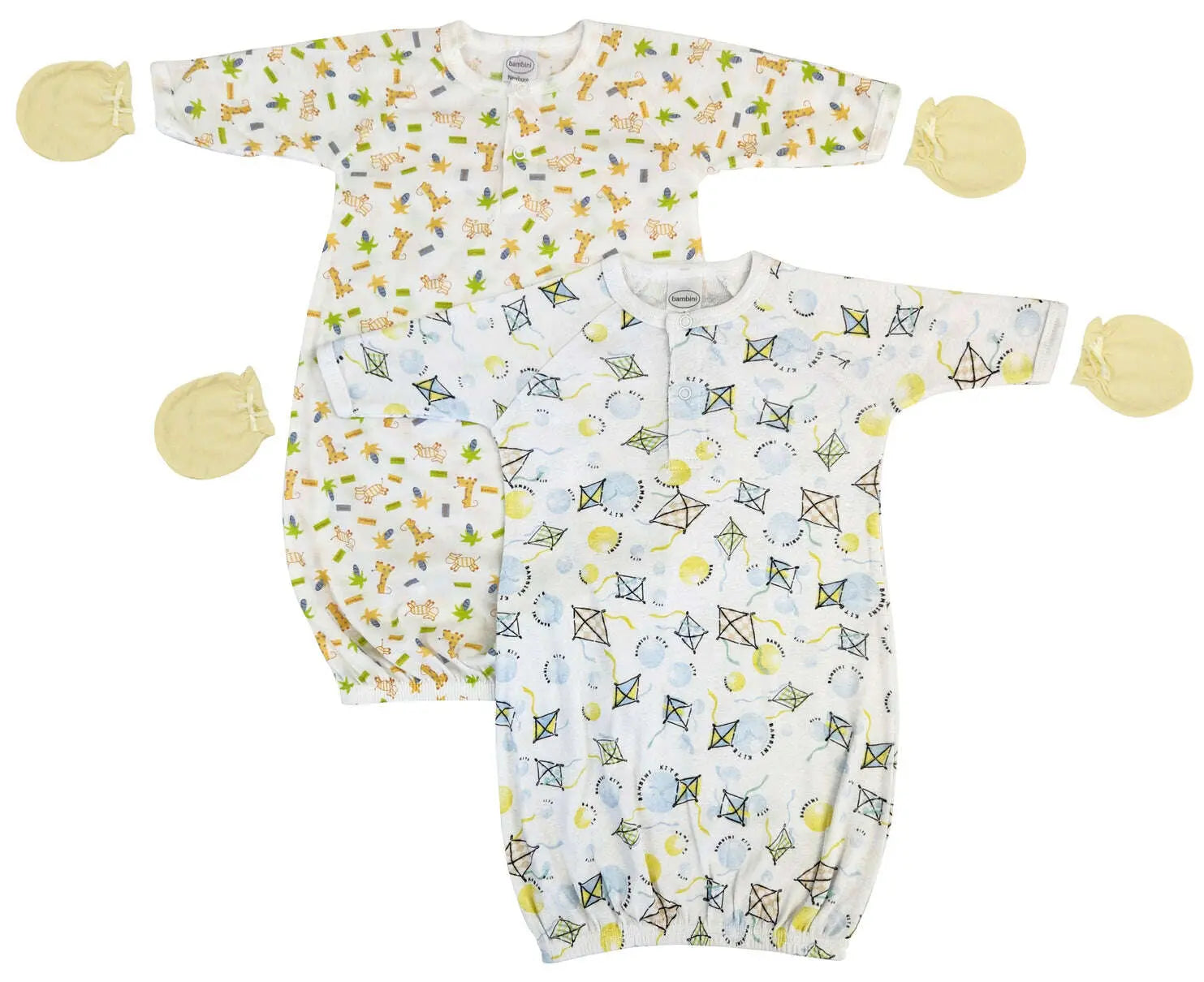 Unisex Print Gown (100% Cotton), Unisex Print Gown (100% Cotton), Yellow Infant Mittens (Jersey), Yellow Infant Mittens (Jersey)
