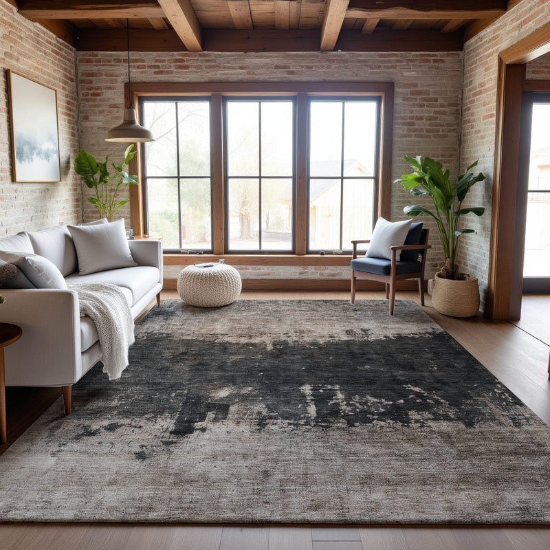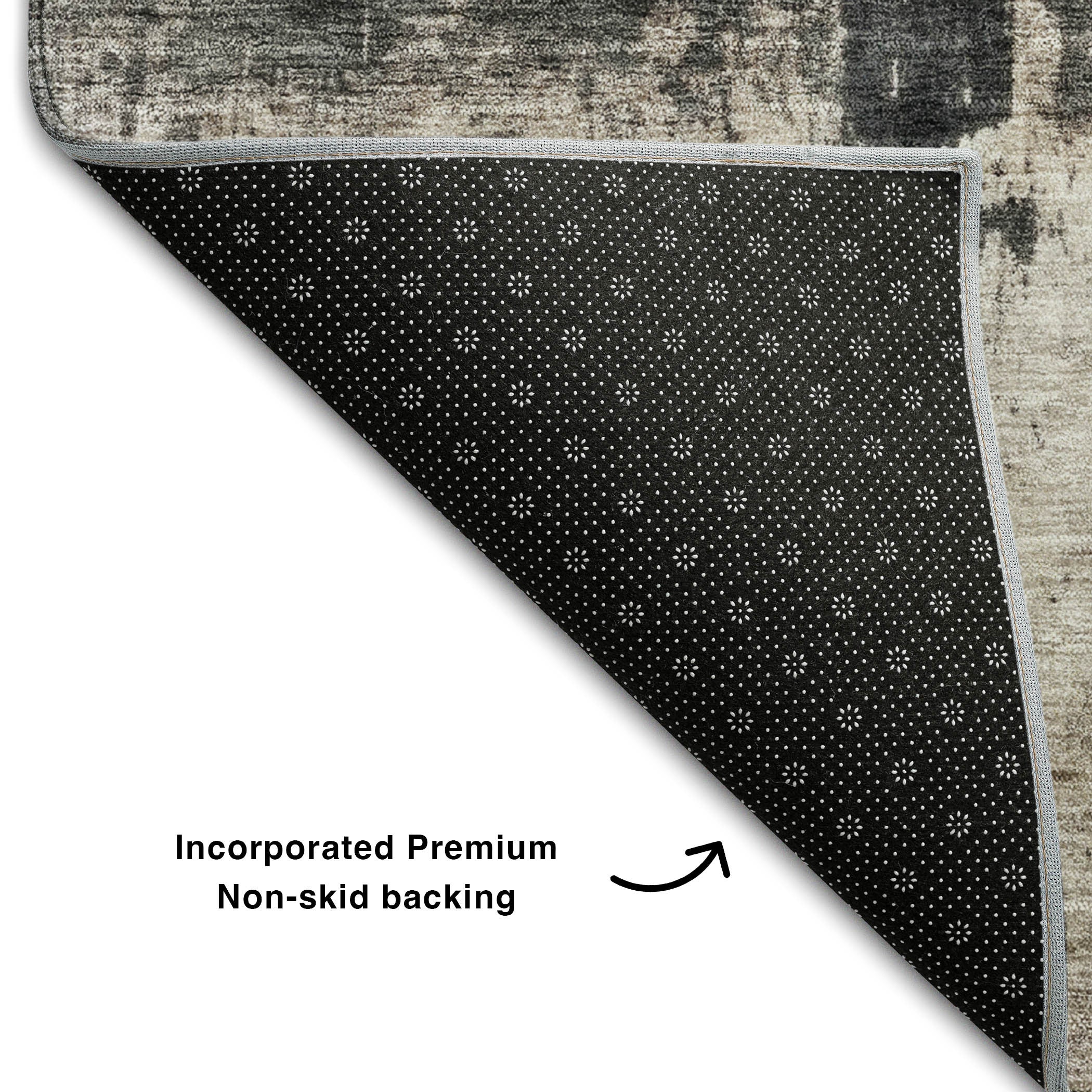 This 5-foot x 8-foot taupe beige and gray abstract washable area rug with uv protection, is a great way to add warmth to a room. Ideal for spaces with kids and pets, this rug is stain resistant to help repel dirt and spilled liquids. Built to last, this rug crafted from polyester fibers is known for its durability and long lasting appeal. Rugs are a great way to showcase your style, hide imperfections, warm your home and reduce noise. This larger sized, transitional styled rug is ready to create a focal point or statement piece in your room. 60.00-inch h x 90.00-inch w x 0.39-inch d.