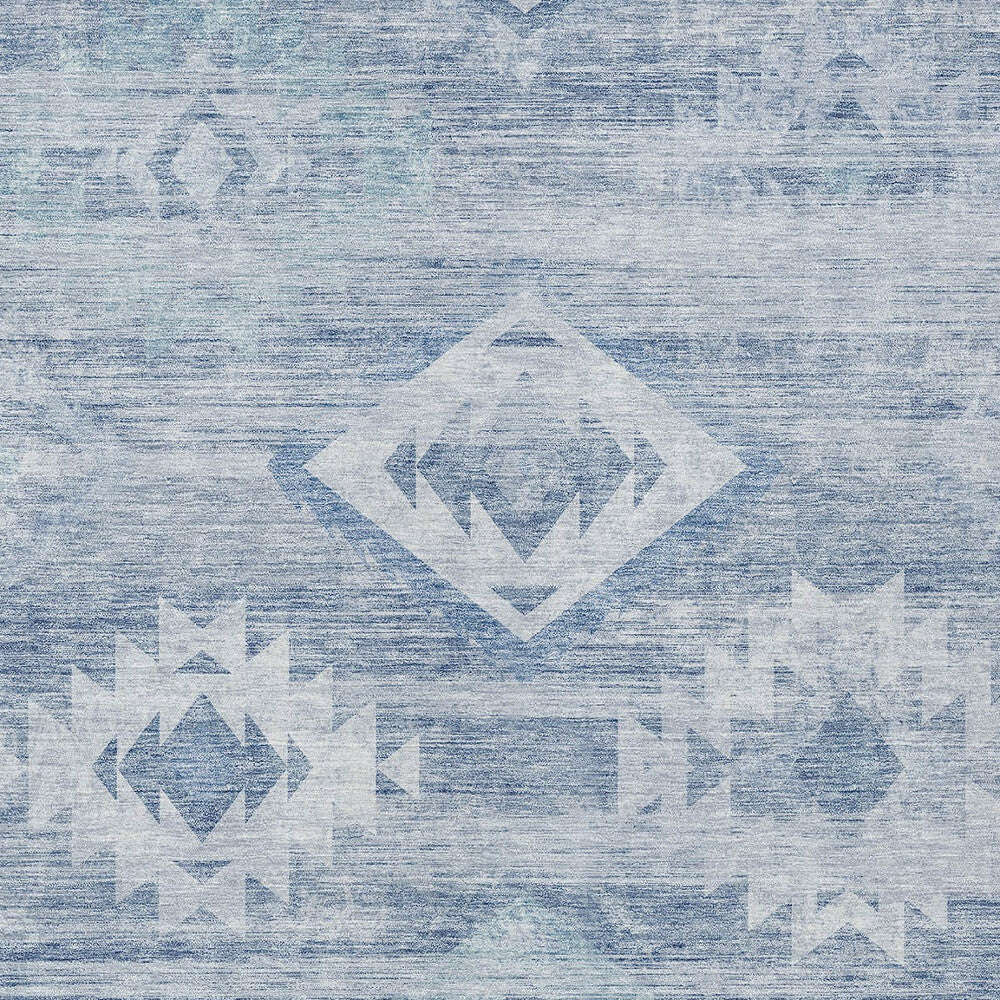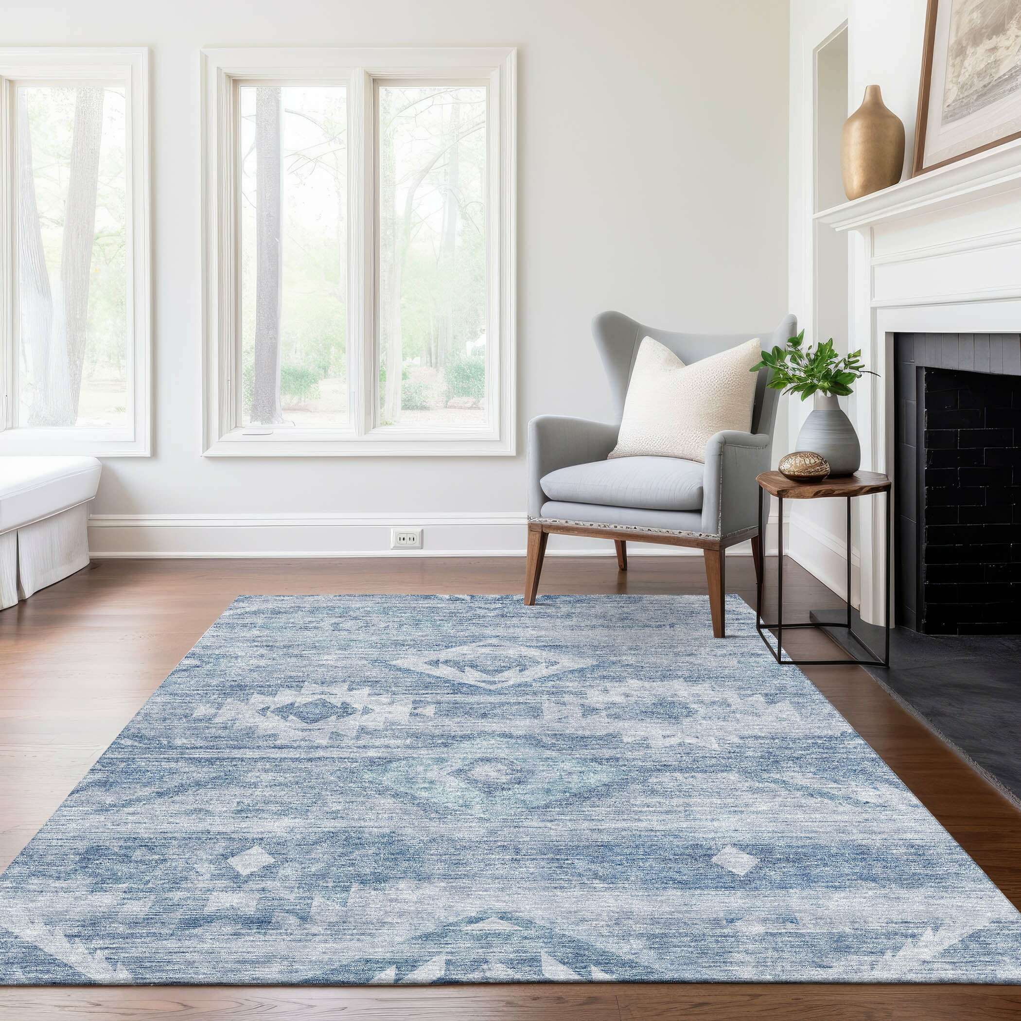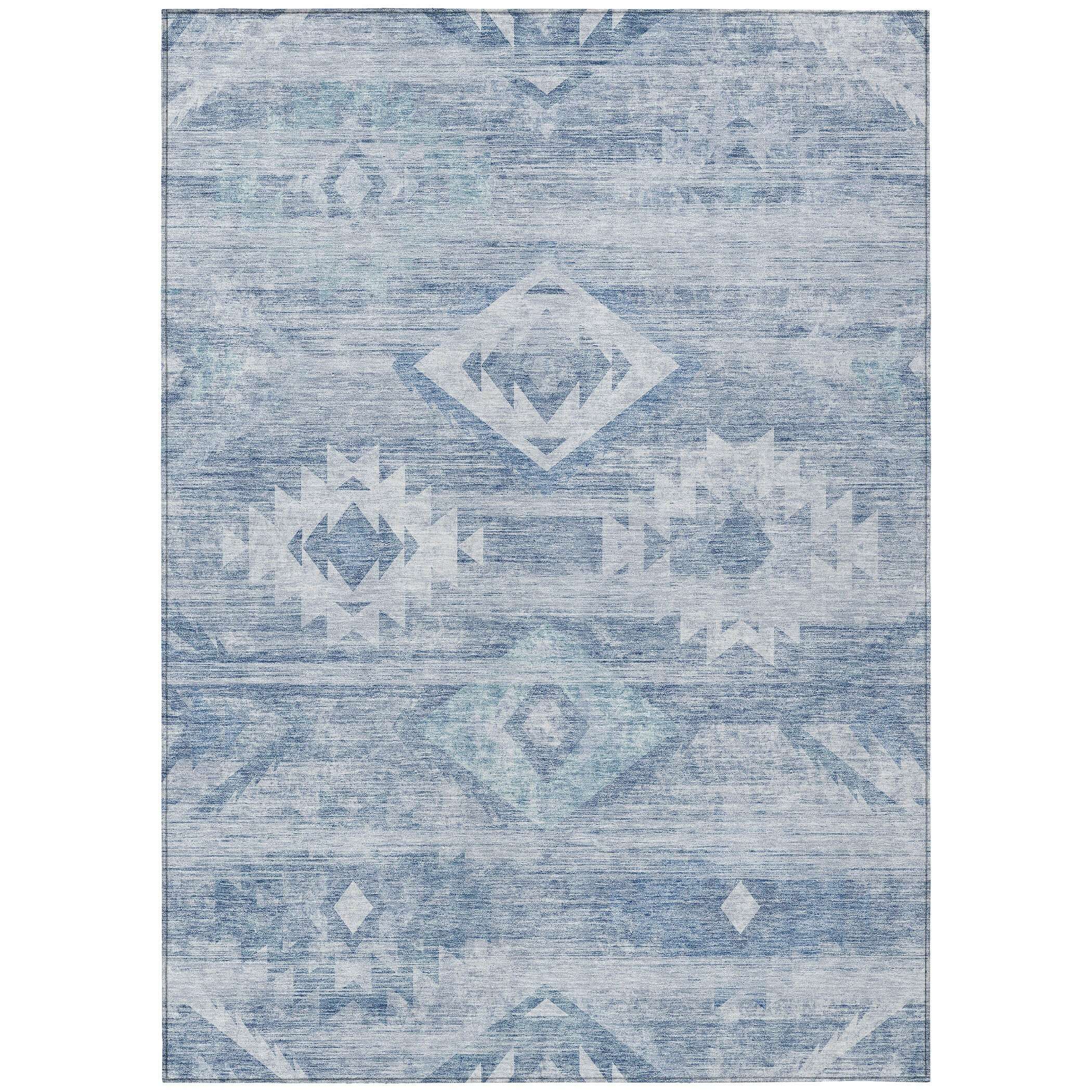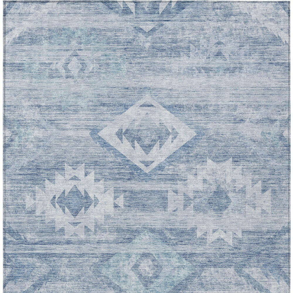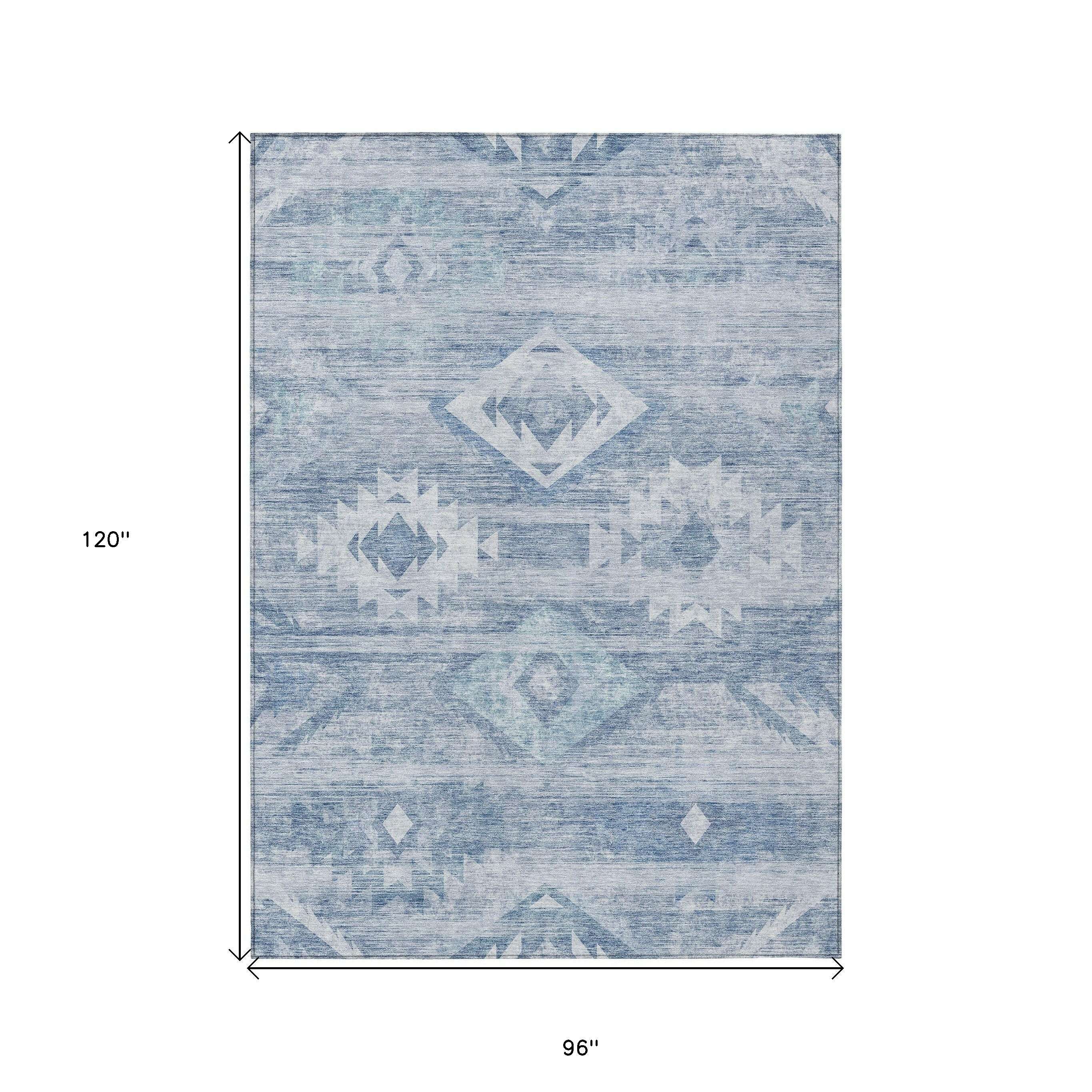 8' X 10' Denim Blue And Sky Blue Southwestern Washable Indoor Outdoor Area Rug