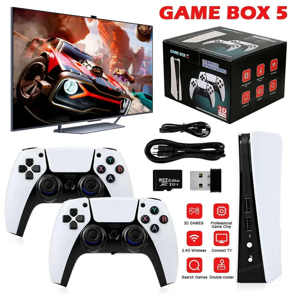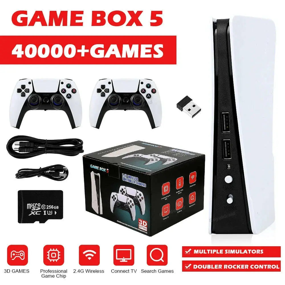 NEW GB5 Video Game Console 64GB/128GB 40000 Free Games HD TV Game Box 5 Two Gamepads For PS1/PPSPP/MAME Arcade Gaming Stick