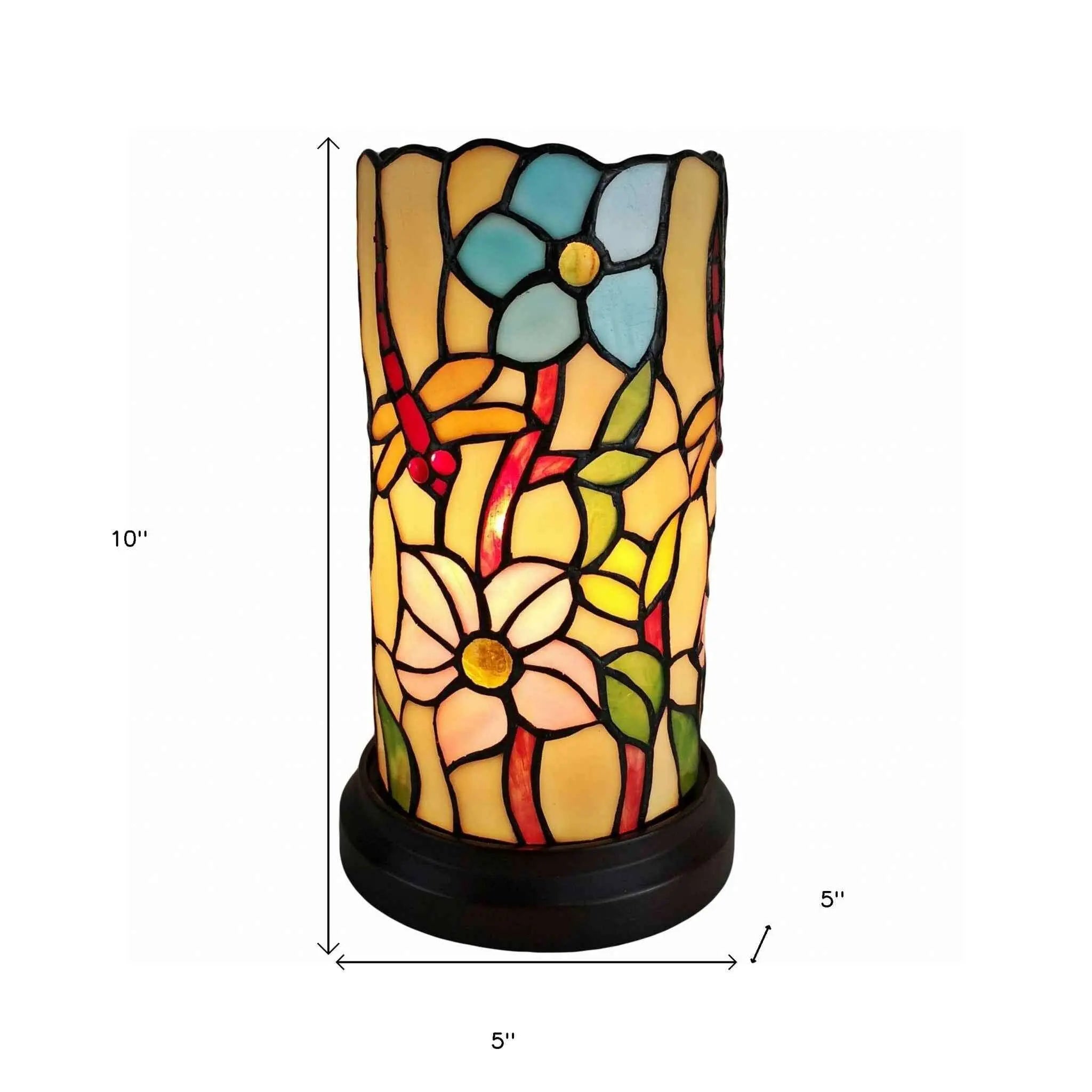 10" Red and Beige Dragonfly Stained Glass Accent Lamp