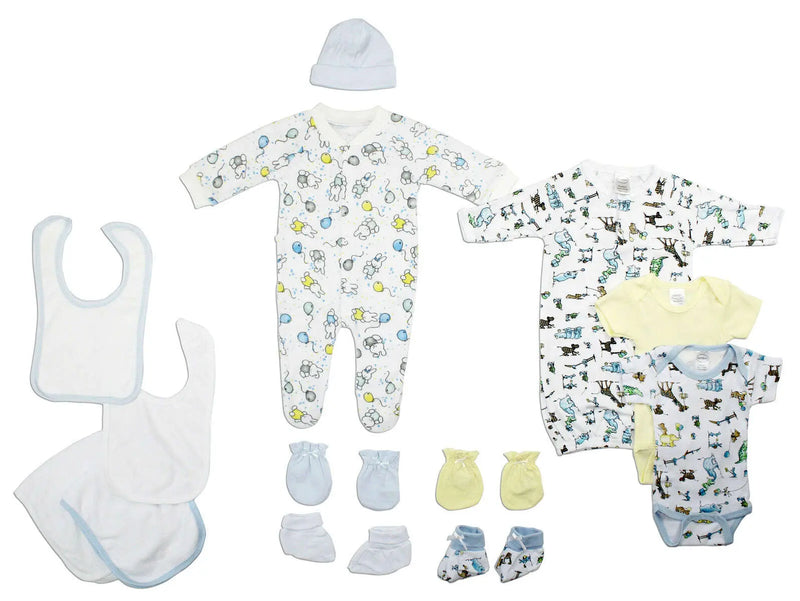 Unisex Print Gown (100% Cotton), 3 pc Baby Gift Set (100% Cotton), Yellow Short Sleeve Onezies (100% Cotton), Terry Sleep 'n Play (Small 0-3M) (80% Cotton / 20% Polyester Terry), Pink Baby Cap (100% Cotton), Yellow Baby Cap (100% Cotton), Pink Infant Mittens (Jersey), Yellow Infant Mittens (Jersey), White Booties (100% Cotton)