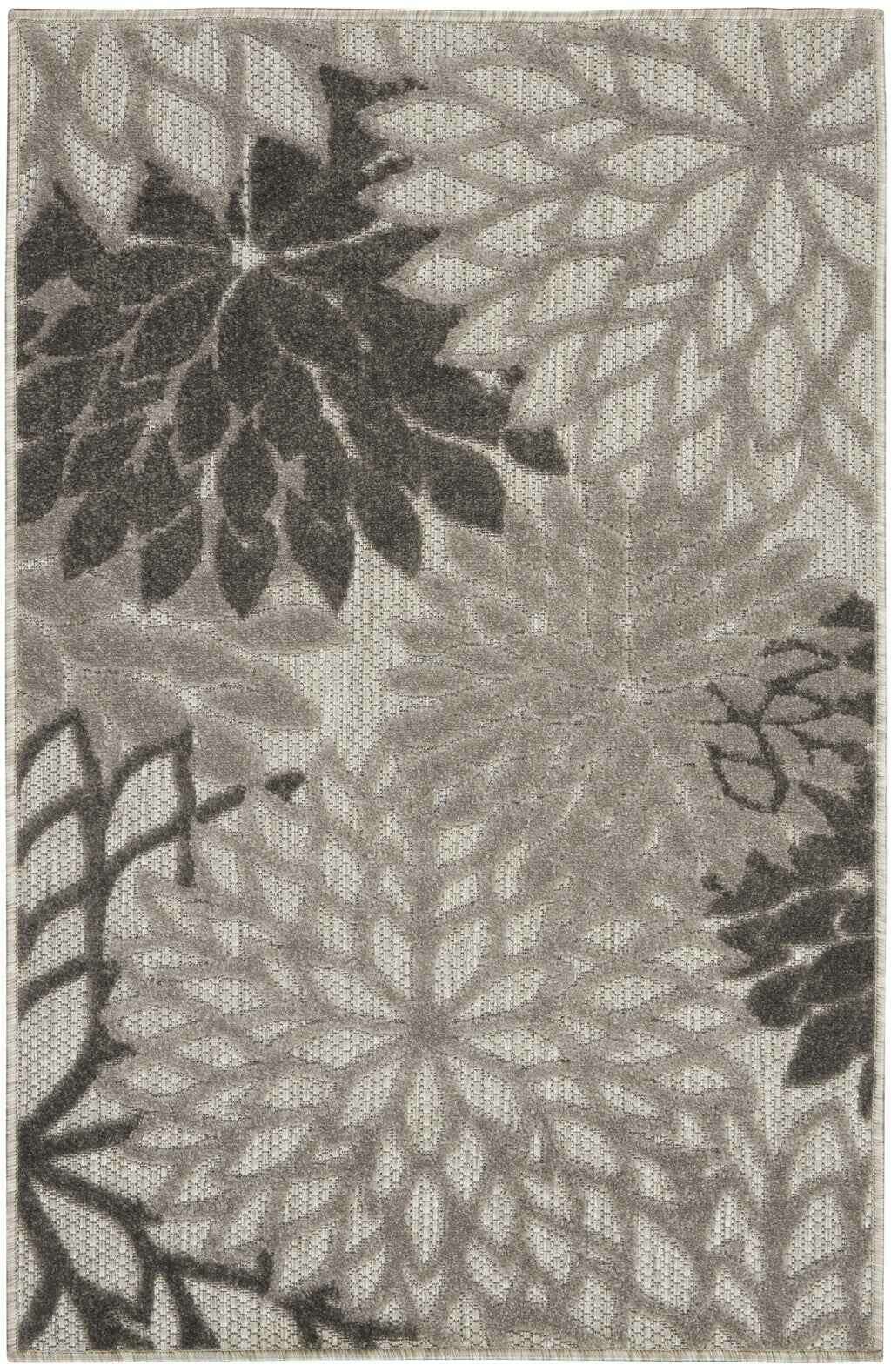 3' X 5' Gray Floral Stain Resistant Non Skid Indoor Outdoor Area Rug