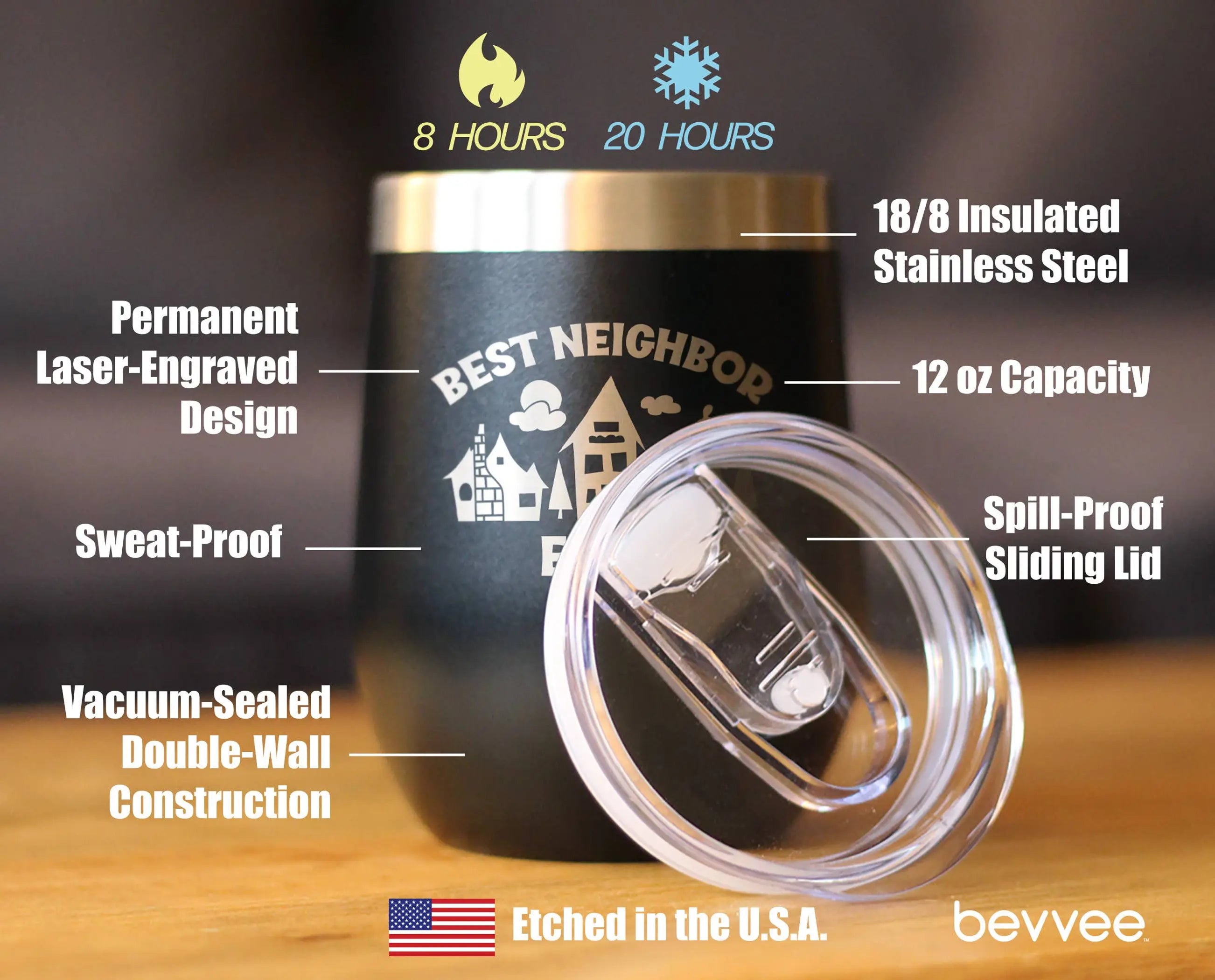 Best Neighbor Ever - Wine Tumbler Glass with Sliding Lid - Stainless Steel Travel Mug - Fun Neighbor Gifts