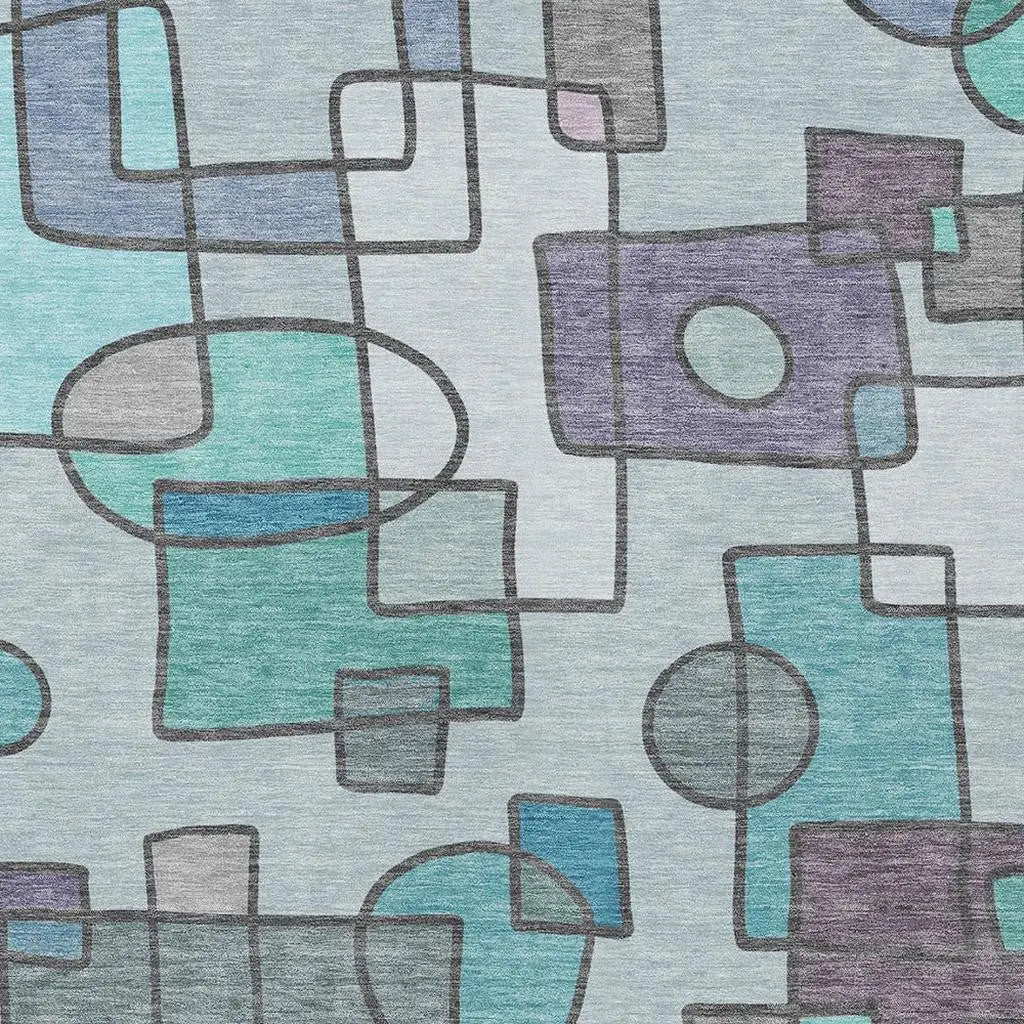 10' X 14' Teal Blue And Plum Geometric Washable Indoor Outdoor Area Rug