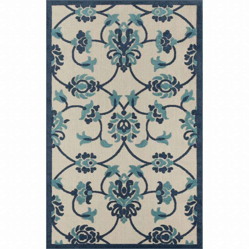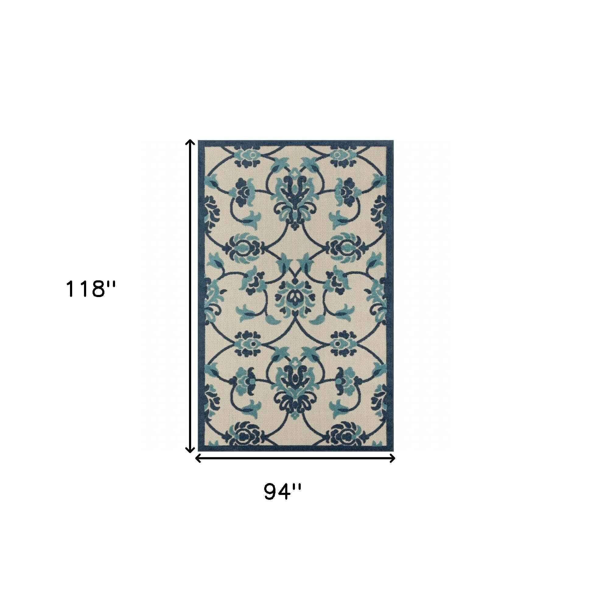 8' X 10' Blue Floral Non Skid Indoor Outdoor Area Rug
