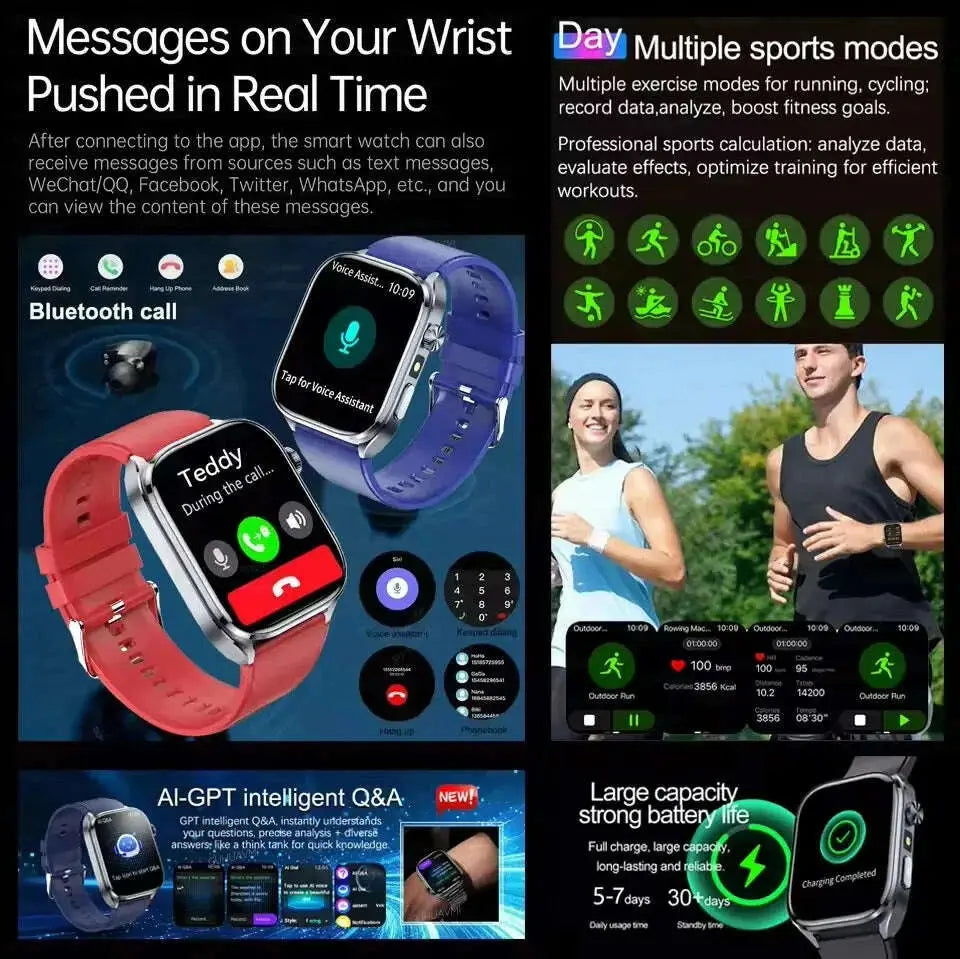 Body Composition analysis Monitoring Smart Watch Men ECG Heart Rate Blood pressure Uric Acid Health Tracker Smartwatches 2025New
